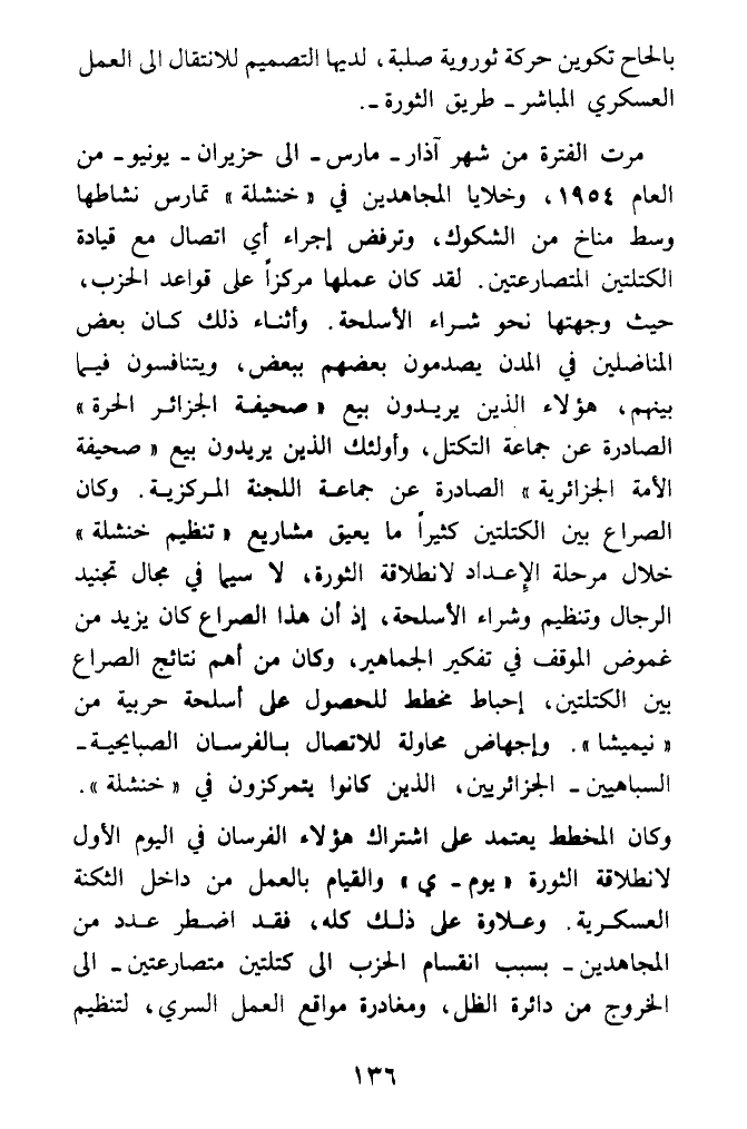 مرت الفترة من شهر آذار - مارس - الى حزيران - يونيو - من العام 1954، وخلايا المجاهدين في (خنشلة) تمارس نشاطها وسط مناخ من الشكوك، وترفض إجراء أي اتصال مع قيادة الكتلتين المتصارعتين. لقد كان عملها مركزا على قواعد الحزب، حيث وجهتها نحو شراء الأسلحة. وأثناء ذلك كان بعض المناضلين في المدن يصدمون بعضهم ببعض، ويتنافسون فيما بينهم، هؤلاء الذين يريدون بيع (صحيفة الجزائر الحرة) الصادرة عن جماعة التكتل، وأولئك الذين يريدون بيع (صحيفة الأمة الجزائرية) الصادرة عن جماعة اللجة المركزية. وكان الصراع بين الكتلتين كثيرا ما يعيق مشاريع (تنظيم خنشلة) خلال مرحلة الإعداد لانطلاقه الثورة، لا سيما في مجال تجنيد الرجال وتنظيم وشراء الأسلحة، إذ أن هذا الصراع كان يزيد من غموض الموقف في تفكير الجماهير، وكان من أهم نتائج الصراع بين الكتلتين، إحباط مخطط للحصول على أسلحة حربية من (نيميشا). وإجهاض محاولة للاتصال بالفرنسان الصبايحية - السباهيين - الجزائريين، الذين كانوا يتمركزون في (خنشلة). وكان المخطط يعتمد على اشتراك هؤلاء الفرسان في اليوم الأول لانطلاقه الثورة (يوم - ي) والقيام بالعمل من داخل الثكنة العسكرية. وعلاوة على ذلك كله، فقد اضطر عدد من المجاهدين - بسبب انقسام الحزب الى كتلتيين متصارعتيين - الى الخروج من دائرة الظل، ومغادرة مواقع العمل السري، لتنظيم