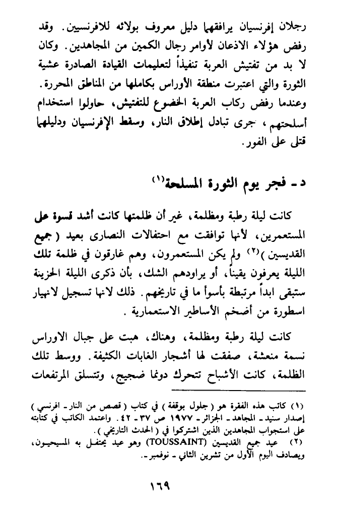 (¬1) كاتب هذه الفقرة هو (جلول بوقفة) في كتاب (قصص من النار - افرنسي) إصدار سنيد - المجاهد - الجزائر - 1977 ص 37 - 42. واعتمد الكاتب في كتابته على استجواب المجاهدين الذين اشتركوا في (الحدث التاريخي).