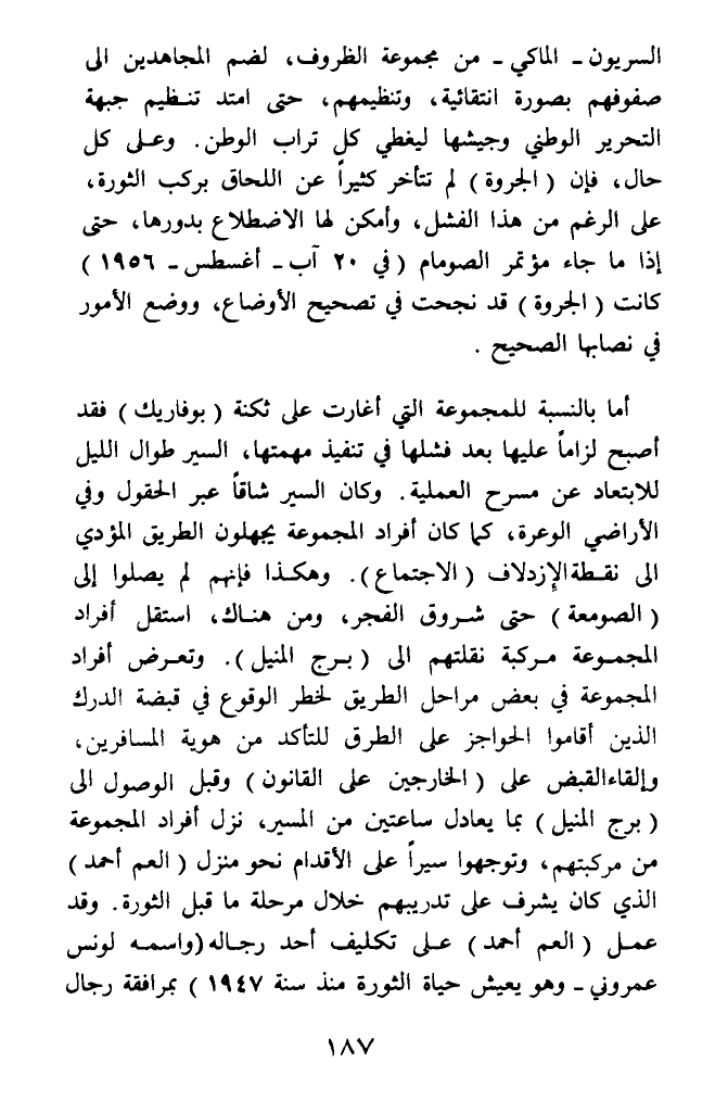 السريون - الماكي - من مجموعة الظروف، لضم المجاهدين الى صفوفهم بصورة انتقائية، وتنظيمهم، حتى امتد تنظيم جبهة التحرير الوطني وجيشها ليغطي كل تراب الوطن. وعلى كل حال، فإن (الجروة) لم تتأخر كثيرا عن اللحاق بركب الثورة، على الرغم من هذا الفشل، وأمكن لها الاضطلاع بدورها، حتى إذا ما جاء مؤتمر الصومام (في 20 آب - أغسطس - 1956) كانت (الجروة) قد نجحت في تصحيح الأوضاع، ووضع الأمور في نصابها الصحيح.