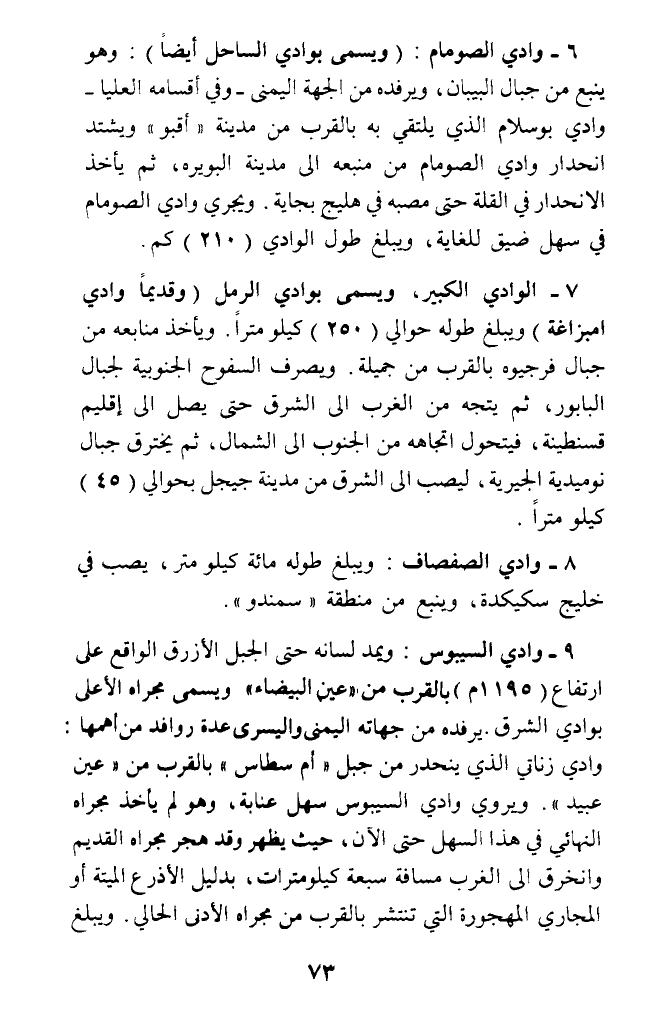 6 - وادي الصومام: (ويسمى بوادي الساحل أيضا): وهو ينبع من جبال البيبان، ويرفده من الجهة اليمنى - وفي أقسامه العليا -وادي بوسلام الذي يلتقي به بالقرب من مدينة (أقبو) ويشتد انحدار وادي الصومام من منبعه الى مدينة البويره، ثم يأخذ الانحدار في القلة حتى مصبه في هليح بجاية. ويجري وادي الصومام في سهل ضيق للغاية، ويبلغ طول الوادي (210) كم.