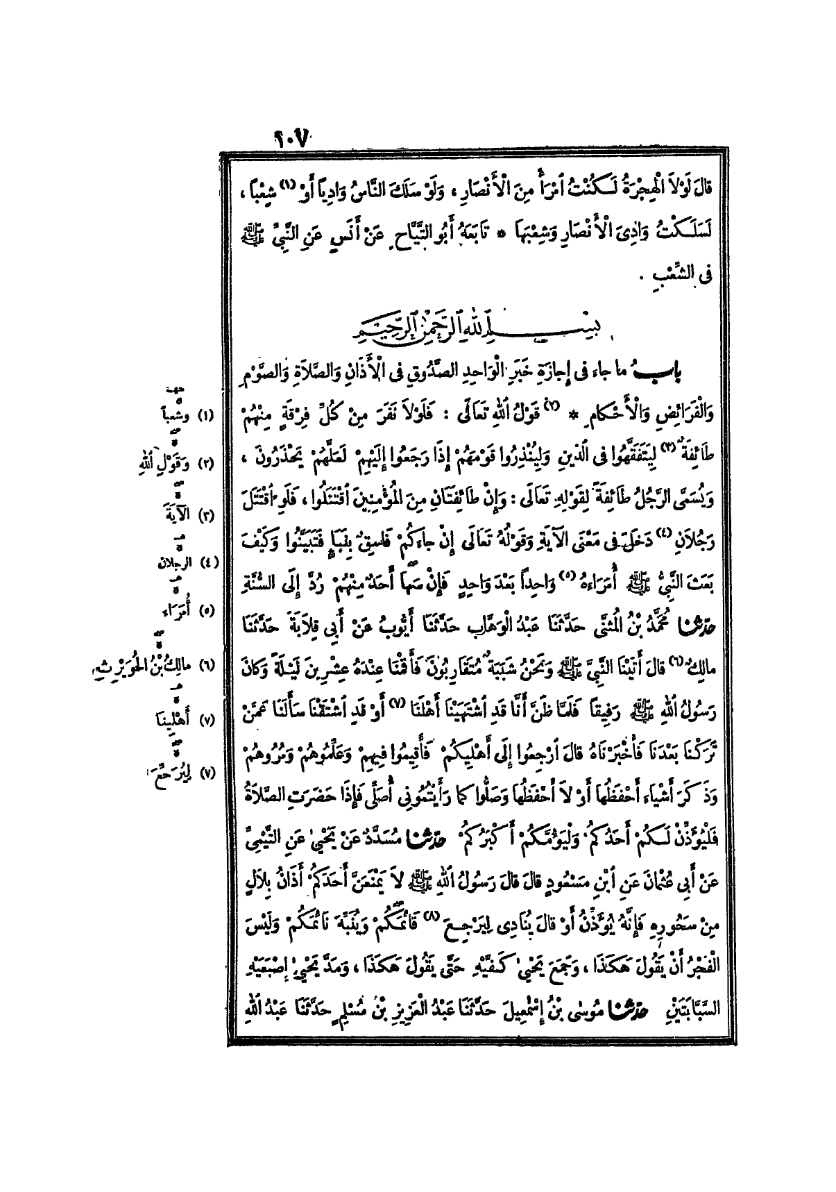 1 - بَابُ مَا جَاءَ فِي إِجَازَةِ خَبَرِ الوَاحِدِ الصَّدُوقِ فِي الأَذَانِ وَالصَّلاَةِ وَالصَّوْمِ وَالفَرَائِضِ وَالأَحْكَامِ.