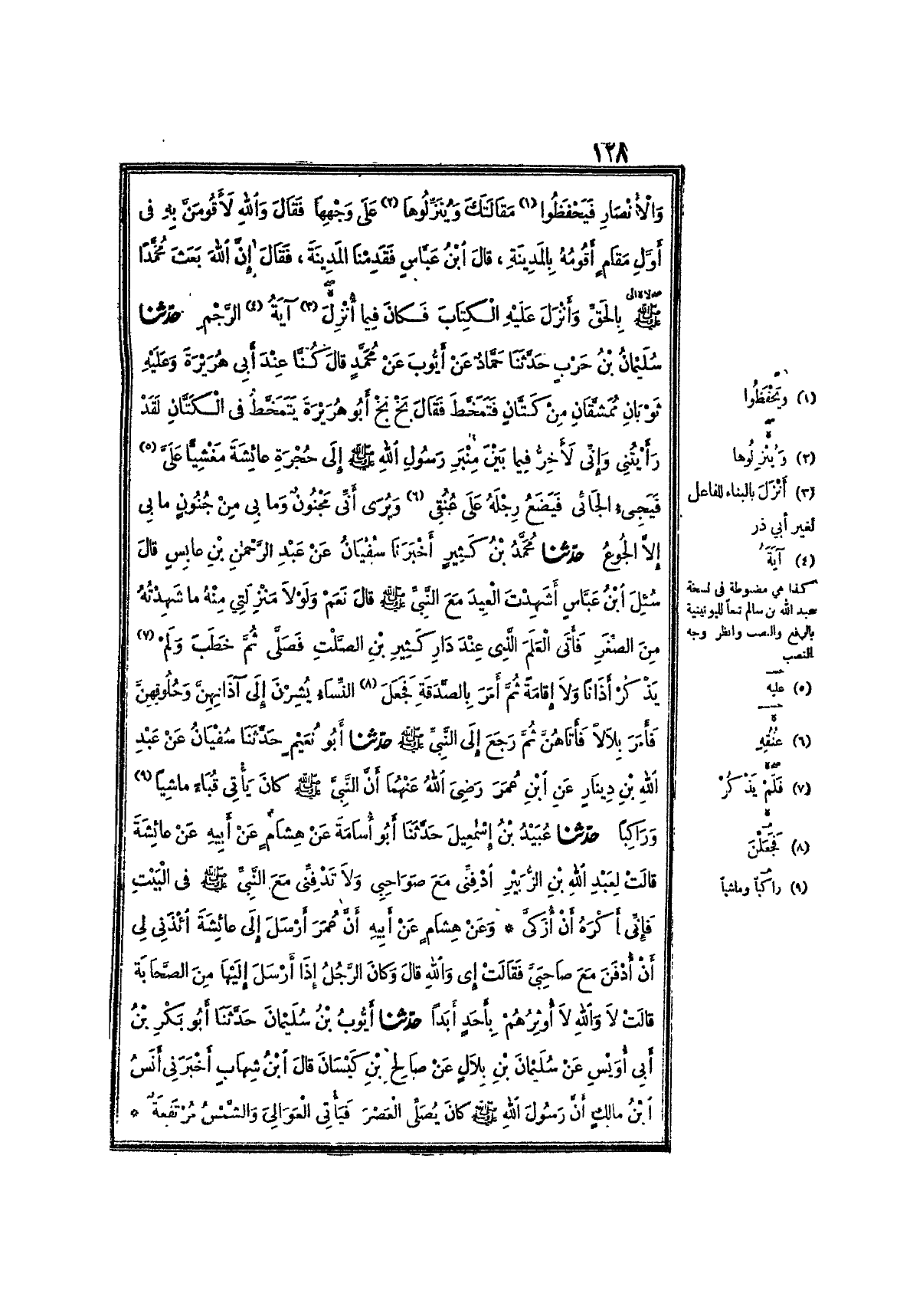 7325- حَدَّثَنَا مُحَمَّدُ بْنُ كَثِيرٍ ، أَخْبَرَنَا سُفْيَانُ ، عَنْ عَبْدِ الرَّحْمَنِ بْنِ عَابِسٍ ، قَالَ : سُئِلَ ابْنُ عَبَّاسٍ : أَشَهِدْتَ العِيدَ مَعَ النَّبِيِّ صَلَّى اللَّهُ عَلَيْهِ وَسَلَّمَ ؟ قَالَ : نَعَمْ ، وَلَوْلاَ مَنْزِلَتِي مِنْهُ ، مَا شَهِدْتُهُ مِنَ الصِّغَرِ ، فَأَتَى العَلَمَ الَّذِي عِنْدَ دَارِ كَثِيرِ بْنِ الصَّلْتِ فَصَلَّى ، ثُمَّ خَطَبَ , وَلَمْ يَذْكُرْ أَذَانًا وَلاَ إِقَامَةً ، ثُمَّ أَمَرَ بِالصَّدَقَةِ , فَجَعَلَ النِّسَاءُ يُشِرْنَ إِلَى آذَانِهِنَّ وَحُلُوقِهِنَّ ، فَأَمَرَ بِلاَلاً فَأَتَاهُنَّ ، ثُمَّ رَجَعَ إِلَى النَّبِيِّ صَلَّى اللَّهُ عَلَيْهِ وَسَلَّمَ.