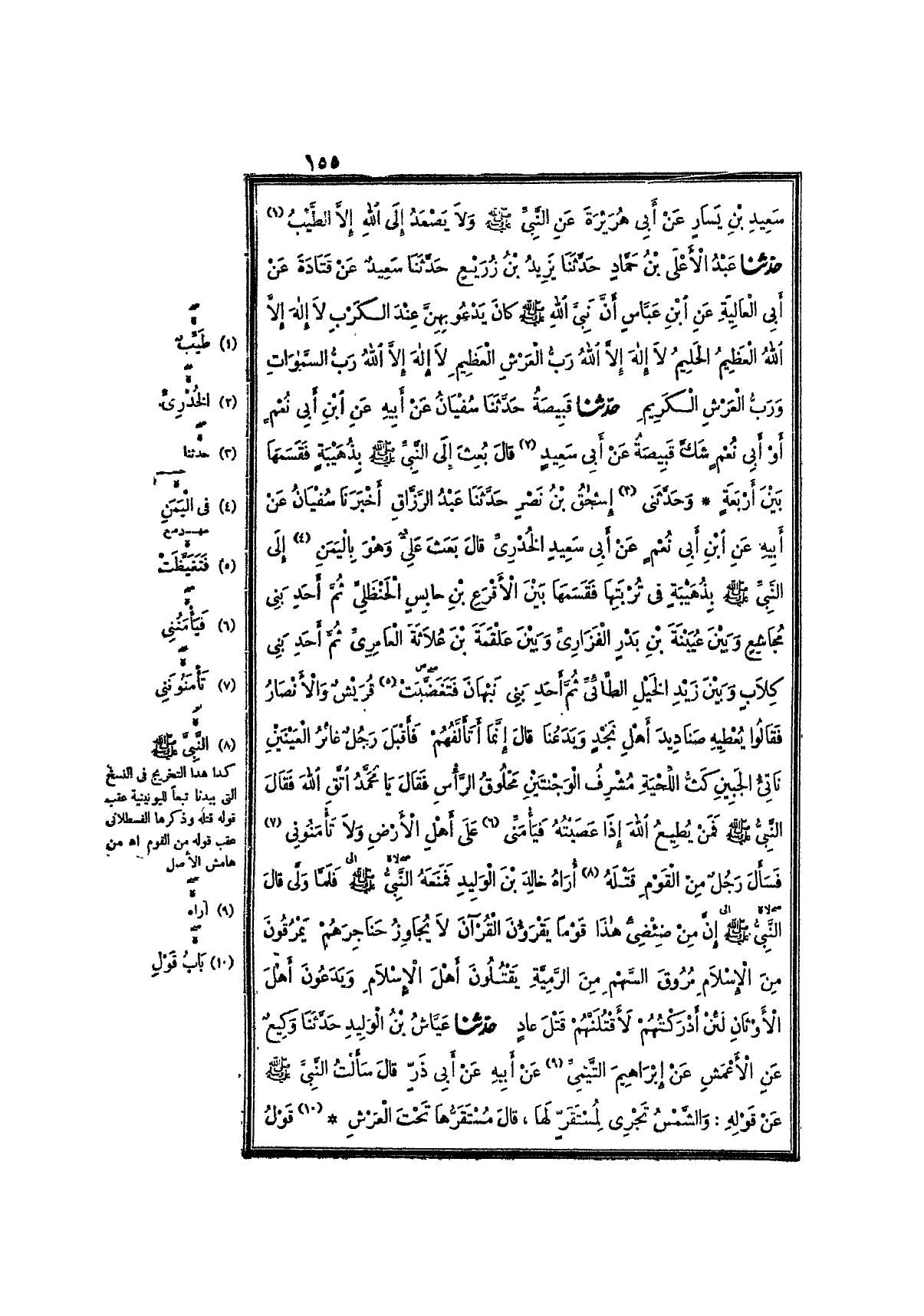 7431- حَدَّثَنَا عَبْدُ الأَعْلَى بْنُ حَمَّادٍ ، حَدَّثَنَا يَزِيدُ بْنُ زُرَيْعٍ ، حَدَّثَنَا سَعِيدٌ ، عَنْ قَتَادَةَ ، عَنْ أَبِي العَالِيَةِ ، عَنِ ابْنِ عَبَّاسٍ ؛ أَنَّ نَبِيَّ اللهِ صَلَّى اللَّهُ عَلَيْهِ وَسَلَّمَ كَانَ يَدْعُو بِهِنَّ عِنْدَ الكَرْبِ : لاَ إِلَهَ إِلاَّ اللَّهُ العَظِيمُ الحَلِيمُ ، لاَ إِلَهَ إِلاَّ اللَّهُ رَبُّ العَرْشِ العَظِيمِ ، لاَ إِلَهَ إِلاَّ اللَّهُ رَبُّ السَّمَاوَاتِ وَرَبُّ العَرْشِ الكَرِيمِ.
