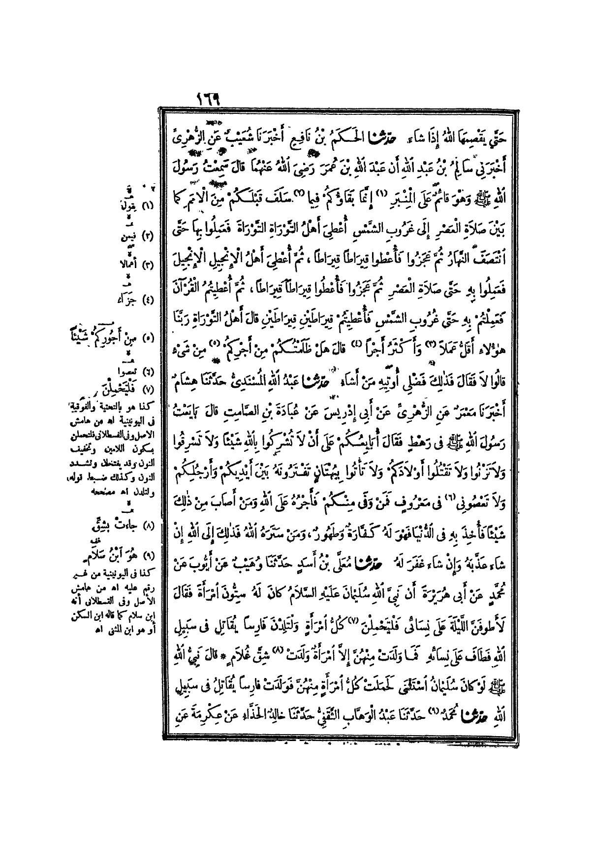 7467- حَدَّثَنَا الحَكَمُ بْنُ نَافِعٍ ، أَخْبَرَنَا شُعَيْبٌ ، عَنِ الزُّهْرِيِّ ، أَخْبَرَنِي سَالِمُ بْنُ عَبْدِ اللهِ ، أَنَّ عَبْدَ اللهِ بْنَ عُمَرَ ، رَضِيَ اللَّهُ عَنْهُمَا ، قَالَ : سَمِعْتُ رَسُولَ اللهِ صَلَّى اللَّهُ عَلَيْهِ وَسَلَّمَ وَهُوَ قَائِمٌ عَلَى المِنْبَرِ : إِنَّمَا بَقَاؤُكُمْ فِيمَا سَلَفَ قَبْلَكُمْ مِنَ الأُمَمِ ، كَمَا بَيْنَ صَلاَةِ العَصْرِ إِلَى غُرُوبِ الشَّمْسِ ، أُعْطِيَ أَهْلُ التَّوْرَاةِ التَّوْرَاةَ ، فَعَمِلُوا بِهَا حَتَّى انْتَصَفَ النَّهَارُ , ثُمَّ عَجَزُوا ، فَأُعْطُوا قِيرَاطًا قِيرَاطًا ، ثُمَّ أُعْطِيَ أَهْلُ الإِنْجِيلِ الإِنْجِيلَ ، فَعَمِلُوا بِهِ حَتَّى صَلاَةِ العَصْرِ , ثُمَّ عَجَزُوا ، فَأُعْطُوا قِيرَاطًا قِيرَاطًا ، ثُمَّ أُعْطِيتُمُ القُرْآنَ ، فَعَمِلْتُمْ بِهِ حَتَّى غُرُوبِ الشَّمْسِ ، فَأُعْطِيتُمْ قِيرَاطَيْنِ قِيرَاطَيْنِ ، قَالَ أَهْلُ التَّوْرَاةِ : رَبَّنَا هَؤُلاَءِ أَقَلُّ عَمَلاً وَأَكْثَرُ أَجْرًا ؟ قَالَ : هَلْ ظَلَمْتُكُمْ مِنْ أَجْرِكُمْ مِنْ شَيْءٍ ؟ قَالُوا : لاَ ، فَقَالَ : فَذَلِكَ فَضْلِي أُوتِيهِ مَنْ أَشَاءُ.
