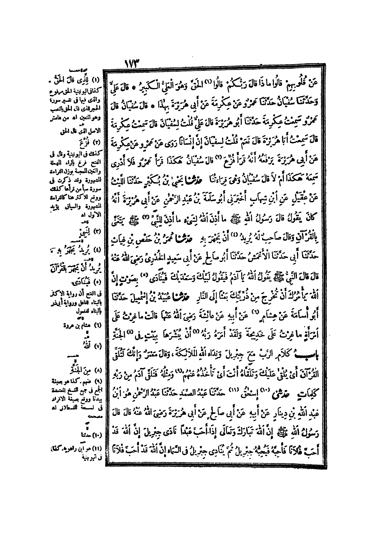 7482- حَدَّثَنَا يَحْيَى بْنُ بُكَيْرٍ ، حَدَّثَنَا اللَّيْثُ ، عَنْ عُقَيْلٍ ، عَنِ ابْنِ شِهَابٍ ، أَخْبَرَنِي أَبُو سَلَمَةَ بْنُ عَبْدِ الرَّحْمَنِ ، عَنْ أَبِي هُرَيْرَةَ , أَنَّهُ كَانَ يَقُولُ : قَالَ رَسُولُ اللهِ صَلَّى اللَّهُ عَلَيْهِ وَسَلَّمَ : مَا أَذِنَ اللَّهُ لِشَيْءٍ , مَا أَذِنَ لِلنَّبِيِّ صَلَّى اللَّهُ عَلَيْهِ وَسَلَّمَ يَتَغَنَّى بِالقُرْآنِ ، وَقَالَ صَاحِبٌ لَهُ : يُرِيدُ أَنْ يَجْهَرَ بِهِ.