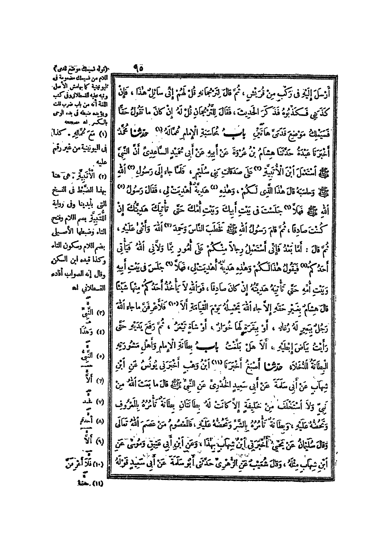 7197- حَدَّثَنَا مُحَمَّدٌ ، أَخْبَرَنَا عَبْدَةُ ، حَدَّثَنَا هِشَامُ بْنُ عُرْوَةَ ، عَنْ أَبِيهِ ، عَنْ أَبِي حُمَيْدٍ السَّاعِدِيِّ ؛ أَنَّ النَّبِيَّ صَلَّى اللَّهُ عَلَيْهِ وَسَلَّمَ اسْتَعْمَلَ ابْنَ اللُّتَبِيَّةِ عَلَى صَدَقَاتِ بَنِي سُلَيْمٍ ، فَلَمَّا جَاءَ إِلَى رَسُولِ اللهِ صَلَّى اللَّهُ عَلَيْهِ وَسَلَّمَ ، وَحَاسَبَهُ قَالَ : هَذَا الَّذِي لَكُمْ ، وَهَذِهِ هَدِيَّةٌ أُهْدِيَتْ لِي ، فَقَالَ رَسُولُ اللهِ صَلَّى اللَّهُ عَلَيْهِ وَسَلَّمَ : فَهَلاَّ جَلَسْتَ فِي بَيْتِ أَبِيكَ ، وَبَيْتِ أُمِّكَ , حَتَّى تَأْتِيَكَ هَدِيَّتُكَ , إِنْ كُنْتَ صَادِقًا ، ثُمَّ قَامَ رَسُولُ اللهِ صَلَّى اللَّهُ عَلَيْهِ وَسَلَّمَ ، فَخَطَبَ النَّاسَ وَحَمِدَ اللَّهَ , وَأَثْنَى عَلَيْهِ , ثُمَّ قَالَ : أَمَّا بَعْدُ ، فَإِنِّي أَسْتَعْمِلُ رِجَالاً مِنْكُمْ عَلَى أُمُورٍ مِمَّا وَلاَّنِي اللَّهُ , فَيَأْتِي أَحَدُكُمْ , فَيَقُولُ : هَذَا لَكُمْ ، وَهَذِهِ هَدِيَّةٌ أُهْدِيَتْ لِي ، فَهَلاَّ جَلَسَ فِي بَيْتِ أَبِيهِ ، وَبَيْتِ أُمِّهِ , حَتَّى تَأْتِيَهُ هَدِيَّتُهُ , إِنْ كَانَ صَادِقًا ، فَوَاللهِ لاَ يَأْخُذُ أَحَدُكُمْ مِنْهَا شَيْئًا ، قَالَ هِشَامٌ : بِغَيْرِ حَقِّهِ ، إِلاَّ جَاءَ اللَّهَ يَحْمِلُهُ يَوْمَ القِيَامَةِ ، أَلاَ فَلأَعْرِفَنَّ مَا جَاءَ اللَّهَ رَجُلٌ بِبَعِيرٍ لَهُ رُغَاءٌ ، أَوْ بِبَقَرَةٍ لَهَا خُوَارٌ ، أَوْ شَاةٍ تَيْعَرُ ، ثُمَّ رَفَعَ يَدَيْهِ حَتَّى رَأَيْتُ بَيَاضَ إِبْطَيْهِ : أَلاَ هَلْ بَلَّغْتُ.