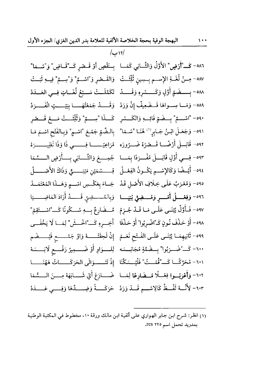 (¬١) انظر: شرح ابن جابر الهواري على ألفية ابن مالك ورقة ١٠، مخطوط في المكتبة الوطنية بمدريد تحمل اسم res ٢٢٥ .