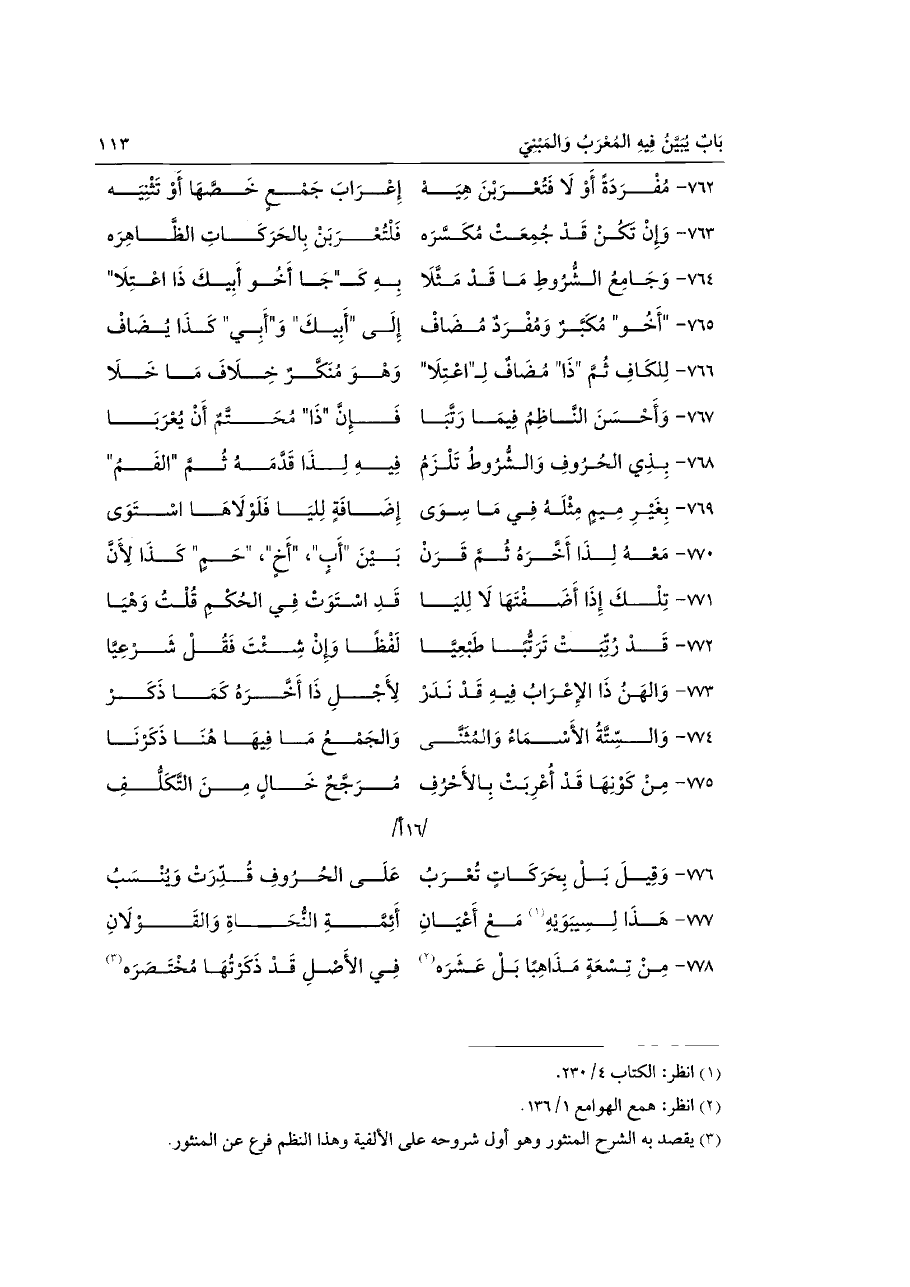 (¬٣) يقصد به الشرح المنثور وهو أول شروحه على الألفية وهذا النظم فرع عن المنثور.