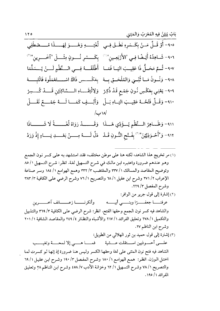 ٩٠٦ - شَاهِدُهُ أَيْضًا فِي "الَارْبَعِينِ" (¬١) ... بِكَسْرِ نُونٍ مِثْلَ "آخَرِينِ" (¬٢)
