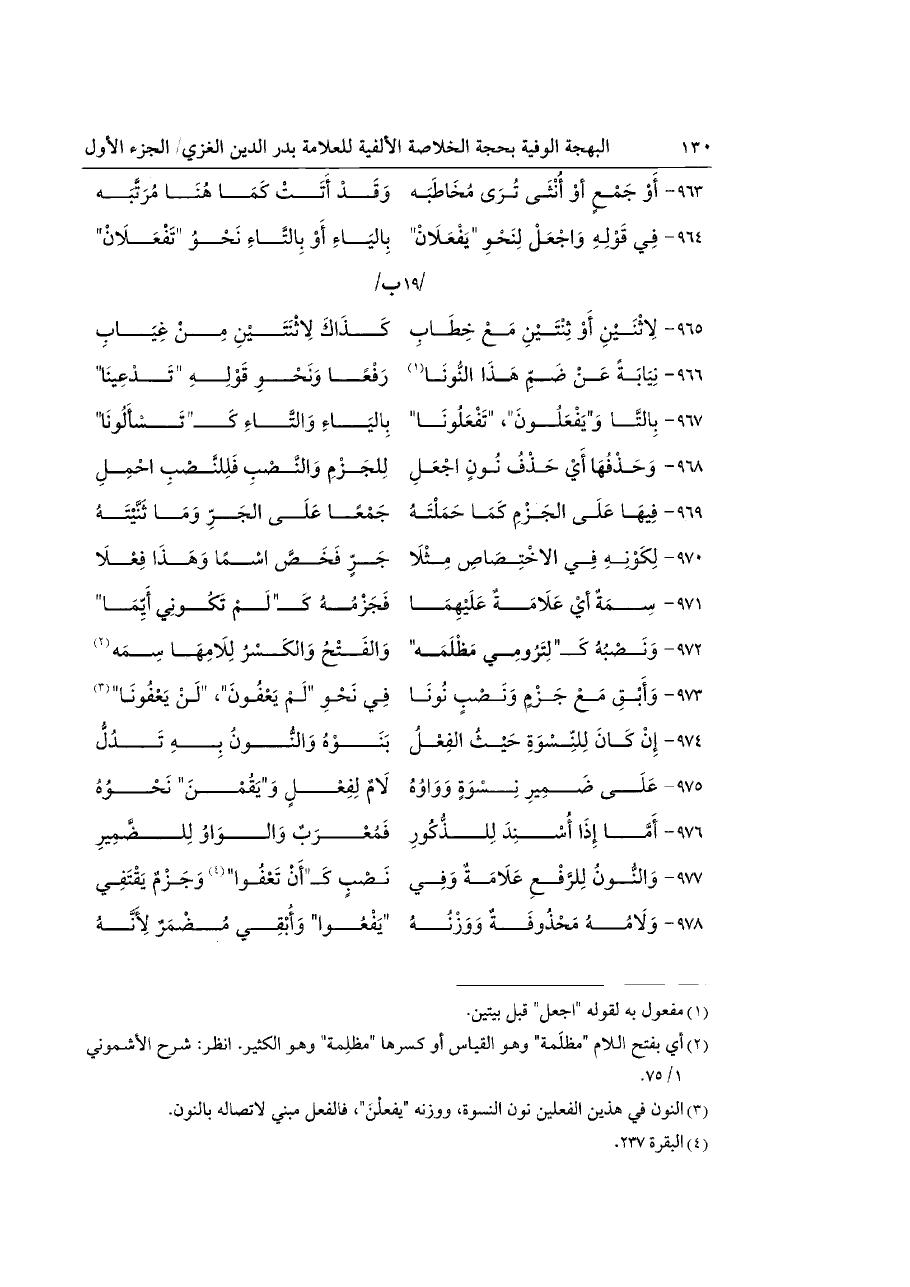٩٦٧ - بِالتَّا وَ"يَفْعَلُونَ"، "تَفْعَلُونَا" ... بِاليَاءِ وَالتَّاءِ كَـ"تَسْأَلُونَا"