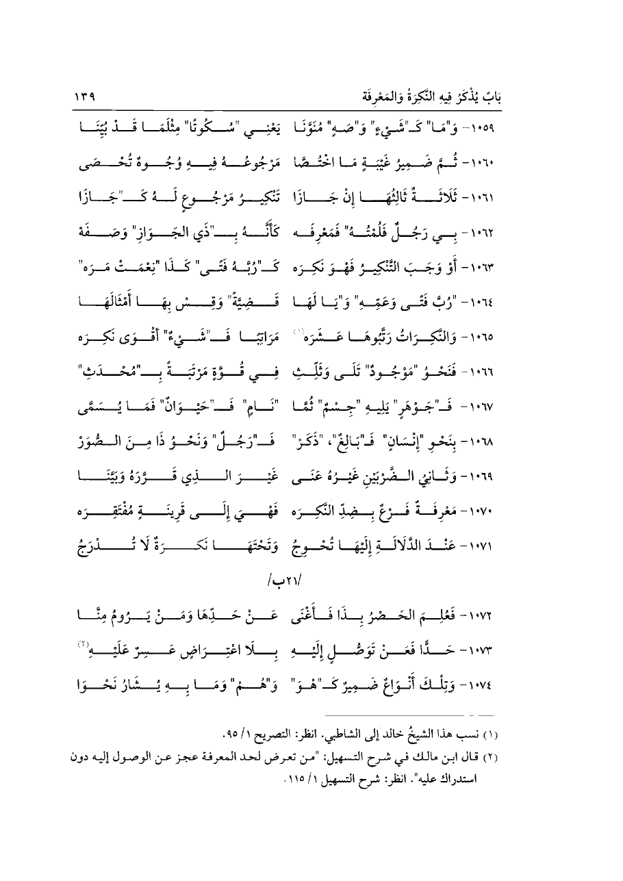 (¬١) نسب هذا الشيخُ خالد إلى الشاطبي. انظر: التصريح ١\ ٩٥.