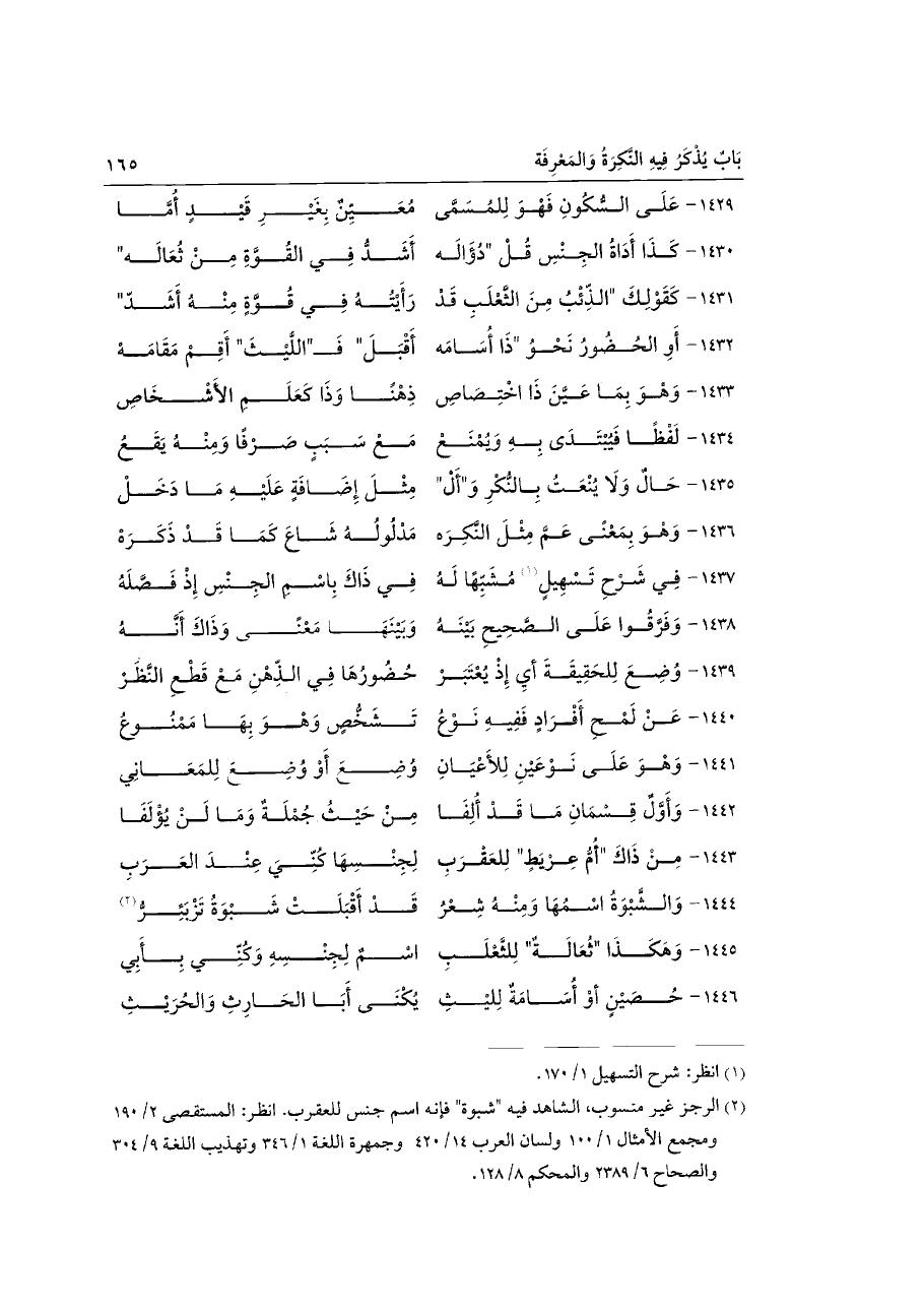 ١٤٤٣ - مِنْ ذَاكَ "أُمُّ عِرْيَطٍ" لِلعَقْرَبِ ... لِجِنْسِهَا كُنِّيَ عِنْدَ العَرَبِ