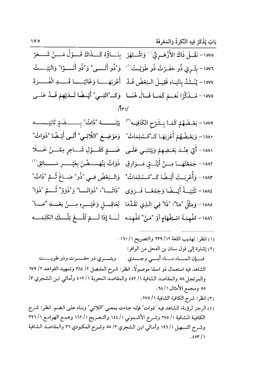 ١٥٧٩ - بَعْضَهُمُ كَمَا بِشَرْحِ الكَافِيَه (¬٣) ... بَيَّنَهُ "ذَاتُ" بِضَمٍّ ثَانِيَه