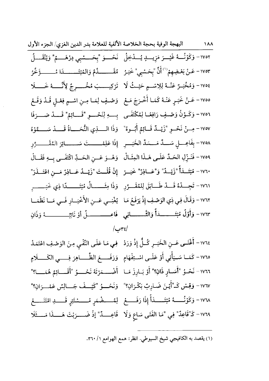 (¬١) يقصد به الكافيجي شيخ السيوطي. انظر: همع الهوامع ١\ ٣٦٠.