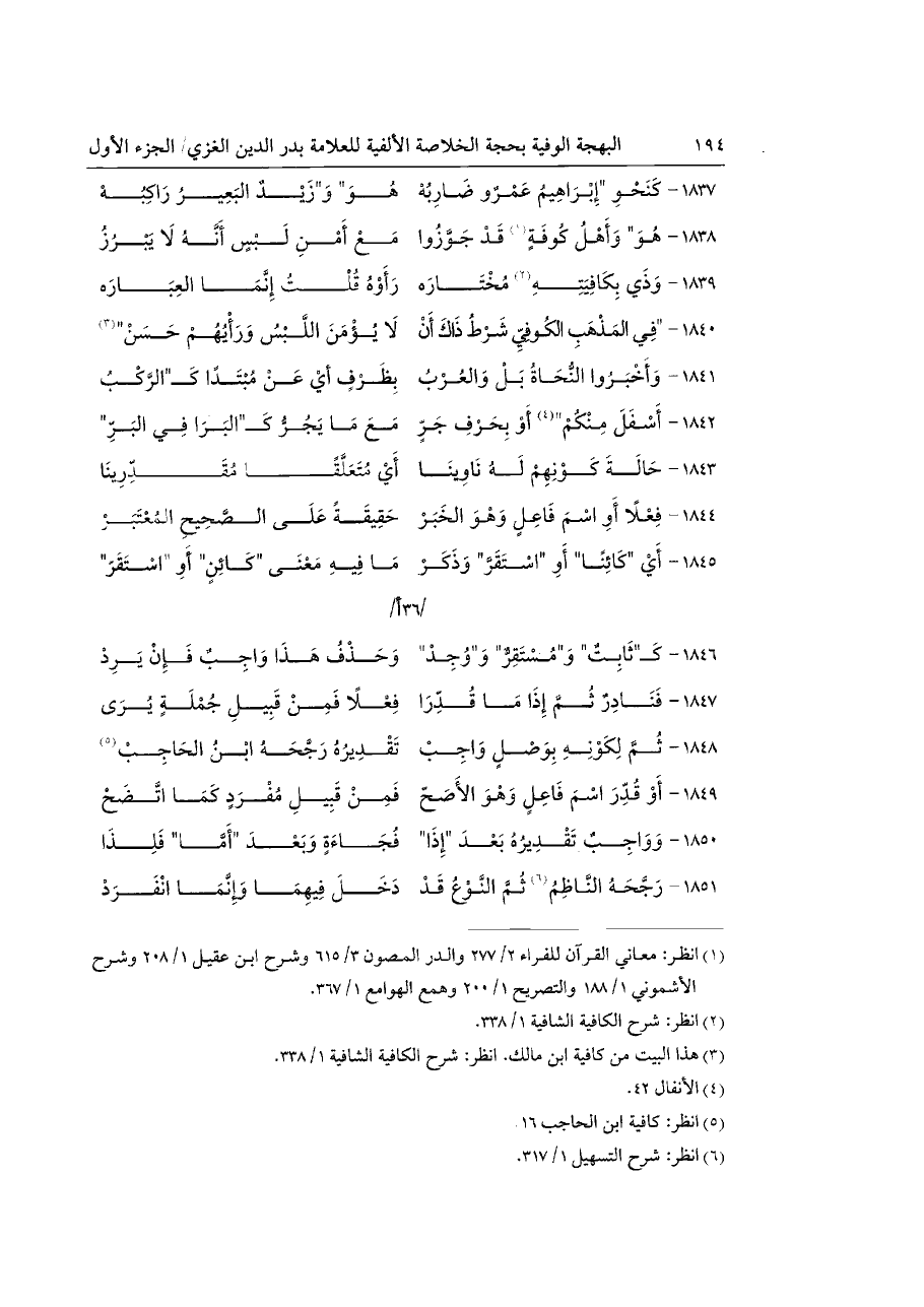 (¬٣) هذا البيت من كافية ابن مالك. انظر: شرح الكافية الشافية ١\ ٣٣٨.