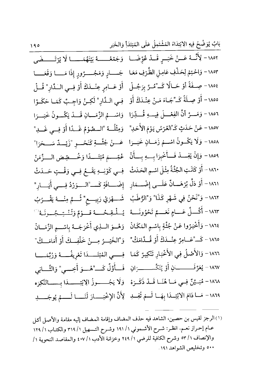 ١٨٥٢ - لِأَنَّهُ عَنْ خَبَرٍ قَدْ عُوِّضَا ... وَجَمْعُهُ بَيْنَهُمَا لَا يُرْتَضَى