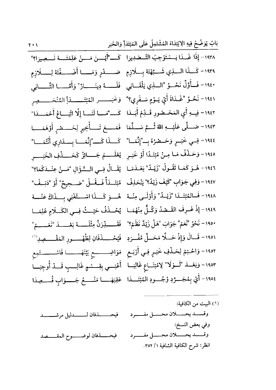١٩٣٨ - إِذَا غَدَا يَسْتَوْجِبُ التَّصْدِيرَا ... كَـ"أَيْنَ مَنْ عَلِمْتَهُ نَصِيرَا؟ "