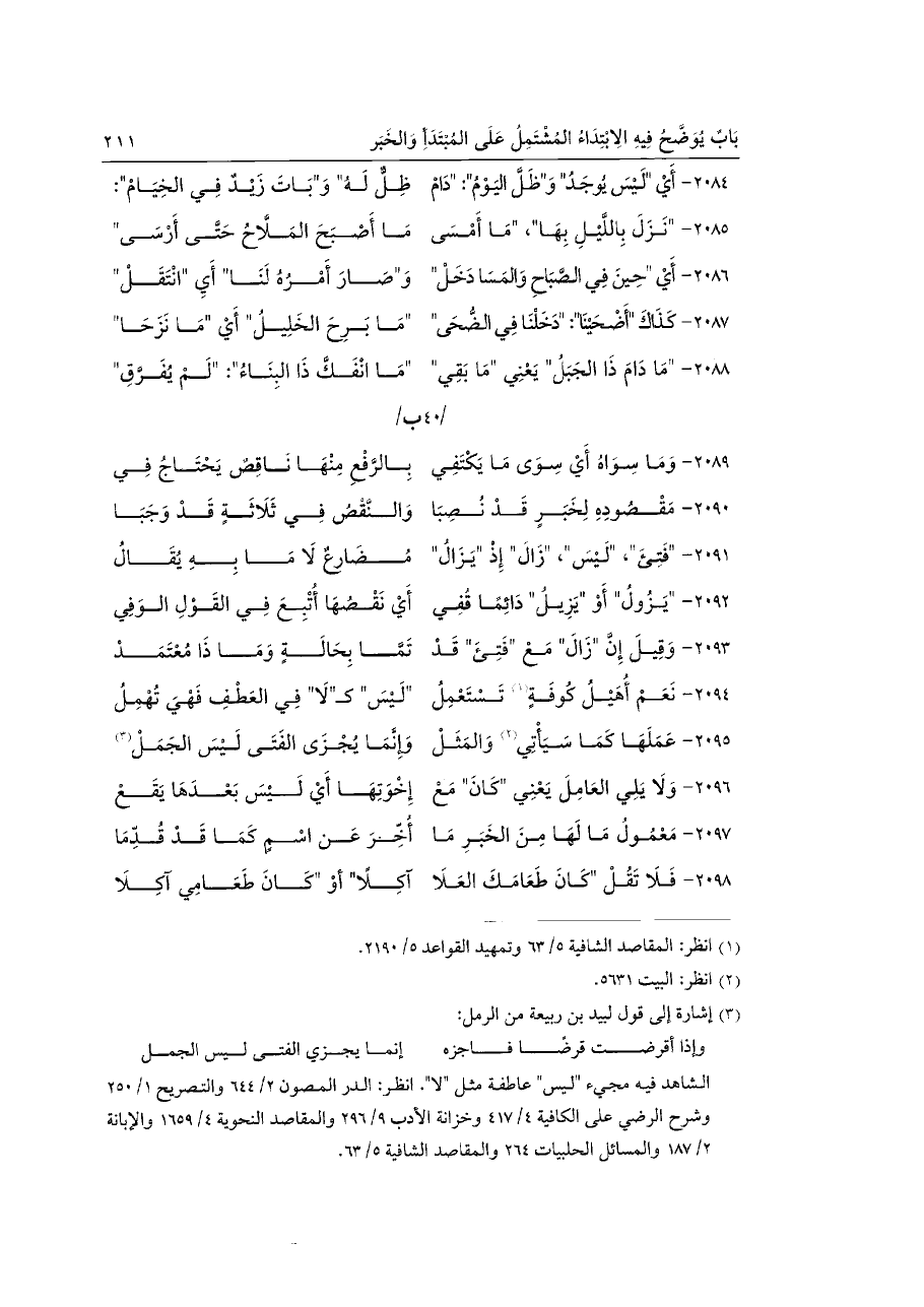 (¬١) انظر: المقاصد الشافية ٥\ ٦٣ وتمهيد القواعد ٥\ ٢١٩٠.