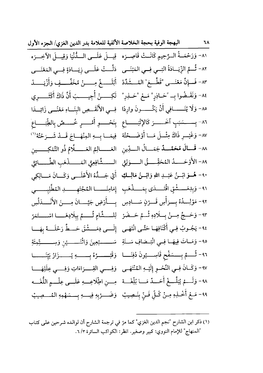 كتاب البهجة الوفية بحجة الخلاصة الألفية (اسم الجزء: 1)