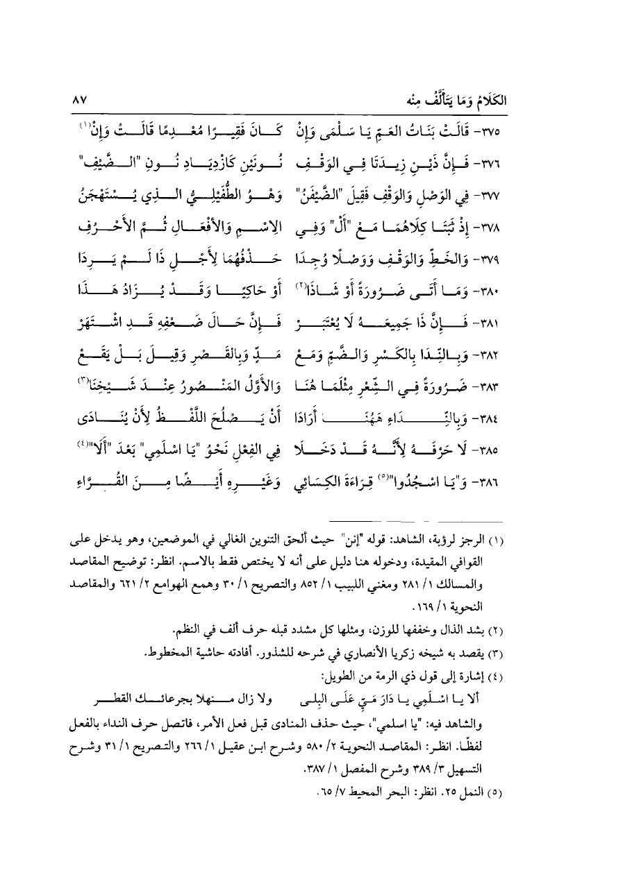 ٣٧٦ - فَإِنَّ ذَيْنِ زِيدَتَا فِي الوَقْفِ ... نُونَيْنِ كَازْدِيَادِ نُونِ "الضَّيْفِ"
