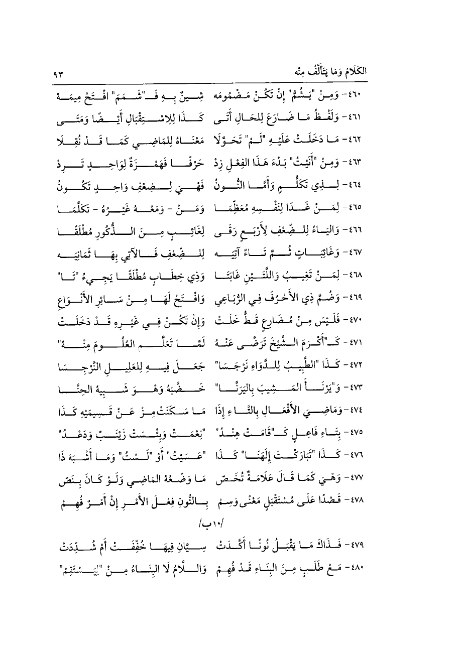 ٤٦٤ - لِذِي تَكَلُّمٍ وَأَمَّا النُّونُ ... فَهْيَ لِضِعْفِ وَاحِدٍ تَكُونُ