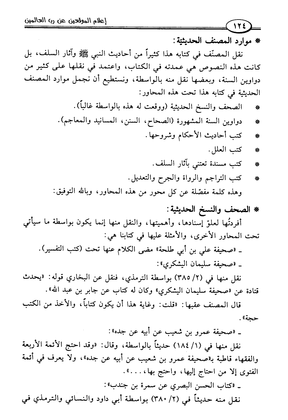 نقل منها في (١/ ١٨٤) حديثًا بالواسطة، وقال: "وقد احتج الأئمة الأربعة والفقهاء قاطبة بـ"صحيفة عمرو بن شعيب عن أبيه عن جده"، ولا يعرف في أئمة الفتوى إلا من احتاج إليها، واحتج بها. . . ".