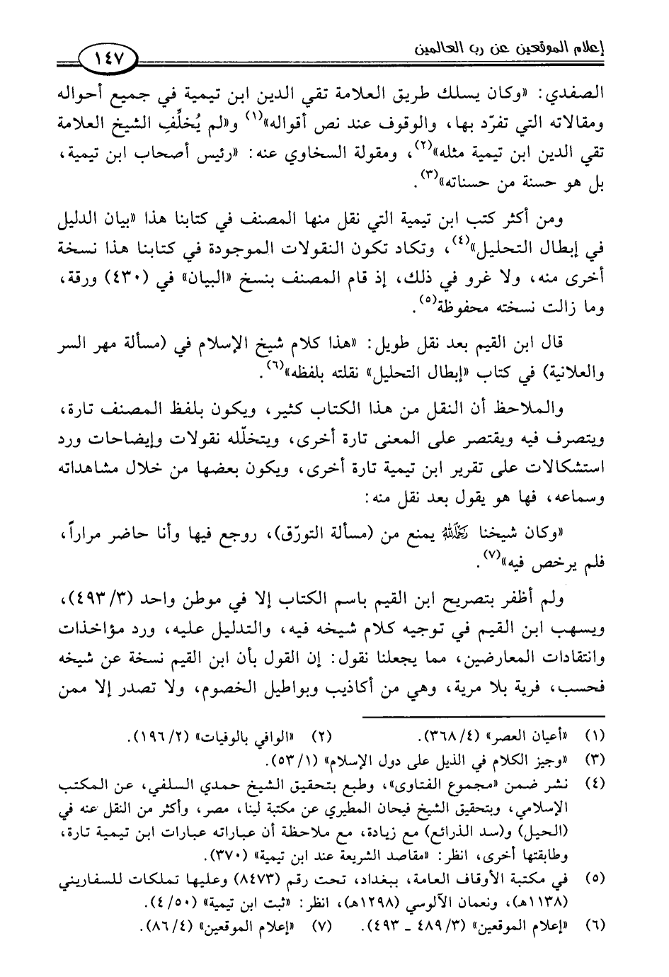 (٦) "إعلام الموقعين" (٣/ ٤٨٩ - ٤٩٣).