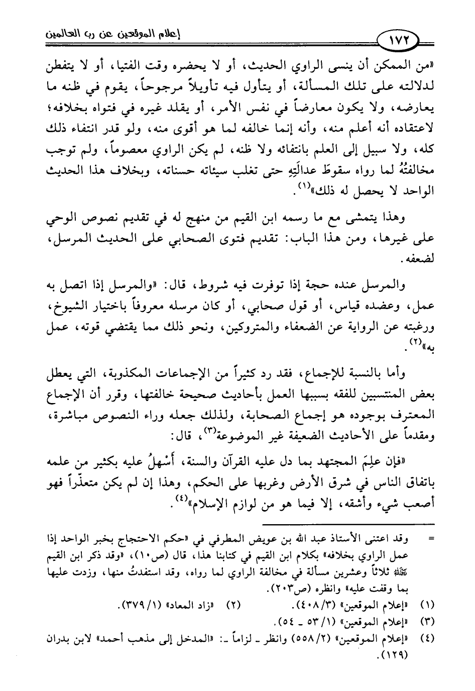 (٤) "إعلام الموقعين" (٢/ ٥٥٨) وانظر -لزامًا-: "المدخل إلى مذهب أحمد" لابن بدران (١٢٩).