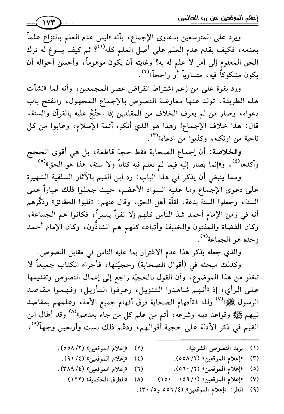 (٧) "إعلام الموقعين" (١/ ١٤٩ - ١٥٠).
