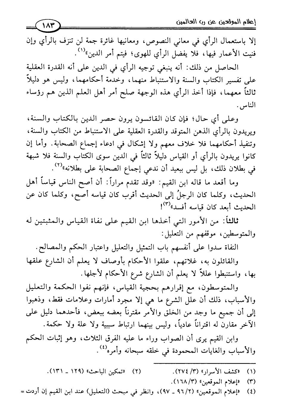 (٤) "إعلام الموقعين" (٢/ ٩٦ - ٩٧)، وانظر في مبحث (التعليل) عند ابن القيم إن أردت =