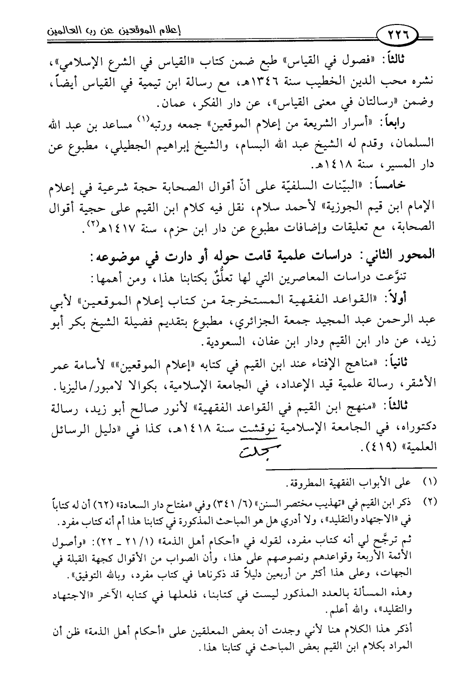 ثانيًا: "مناهج الإفتاء عند ابن القيم في كتابه "إعلام الموقعين"" لأسامة عمر الأشقر، رسالة علمية قيد الإعداد، في الجامعة الإسلامية، بكوالا لامبور/ ماليزيا.