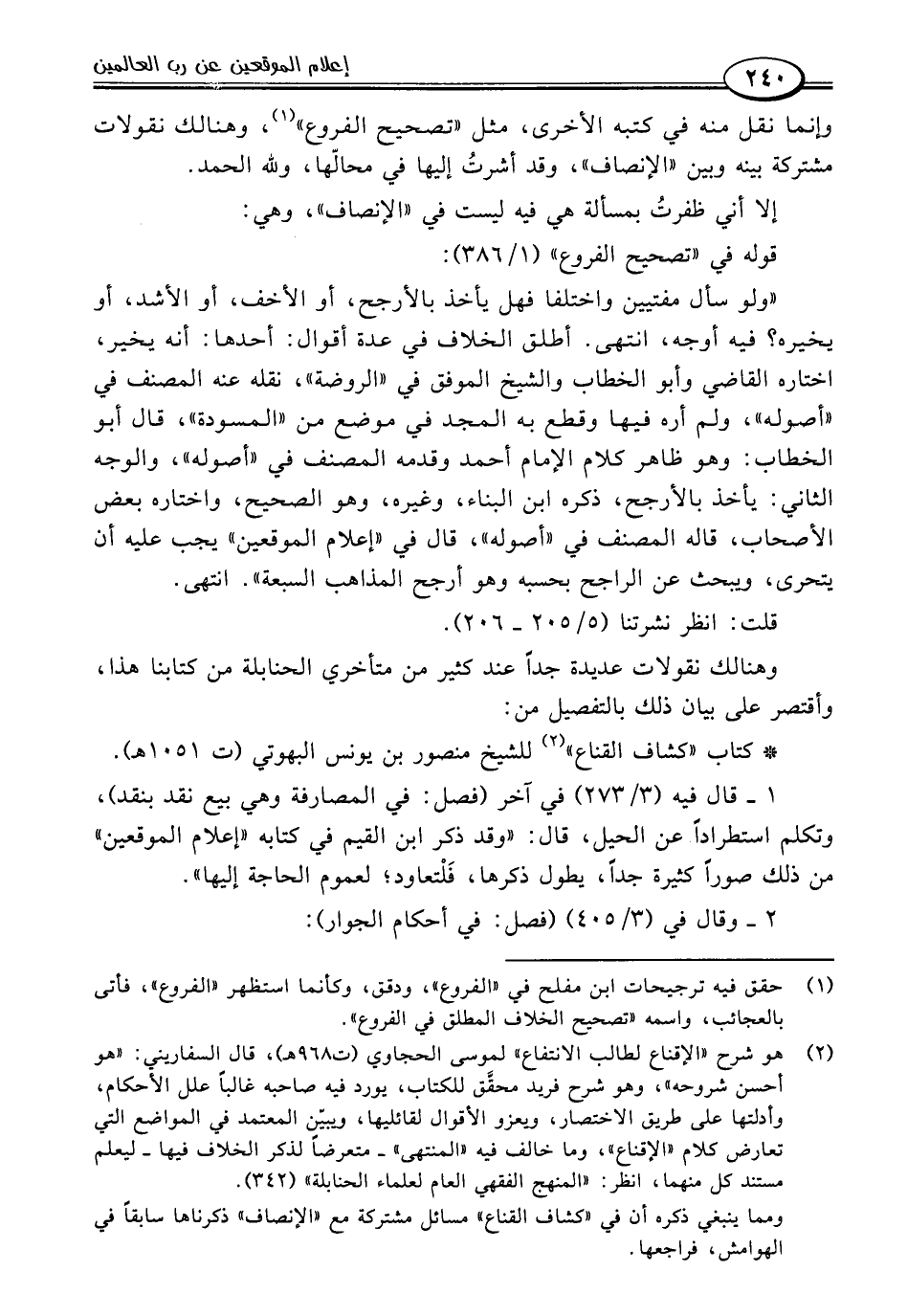 قوله في "تصحيح الفروع" (١/ ٣٨٦):