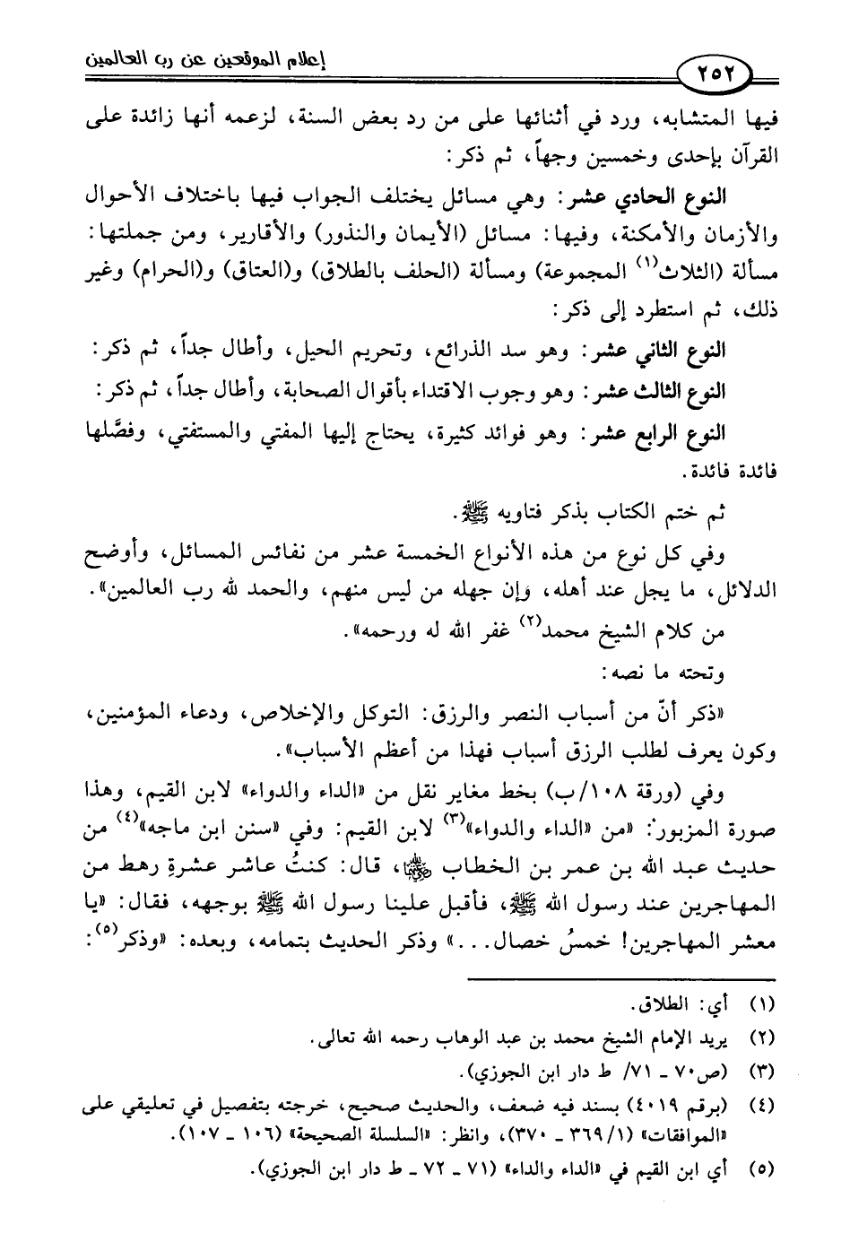 من كلام الشيخ محمد (٢) غفر اللَّه له ورحمه".