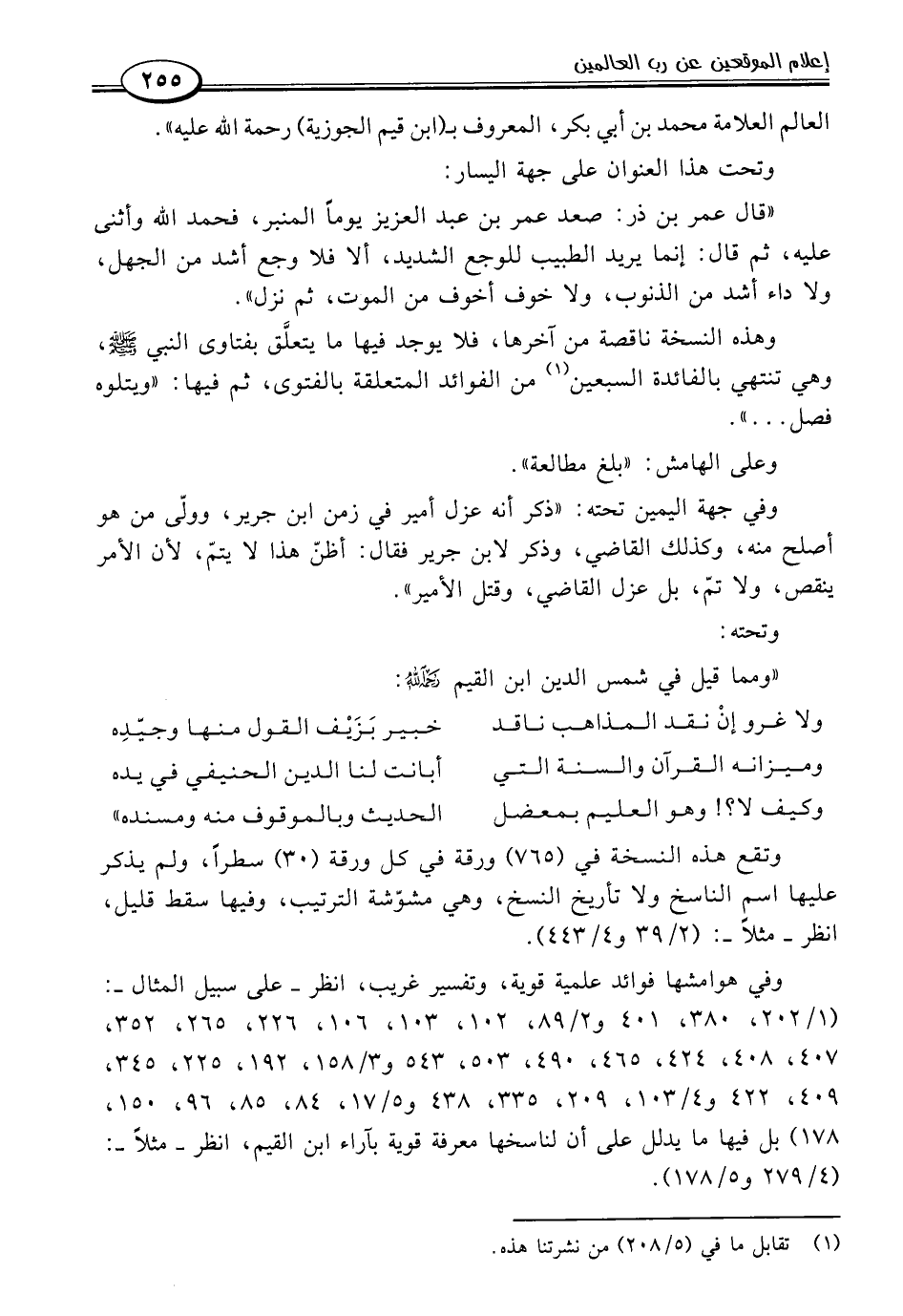 العالم العلامة محمد بن أبي بكر، المعروف بـ (ابن قيم الجوزية) رحمة اللَّه عليه".