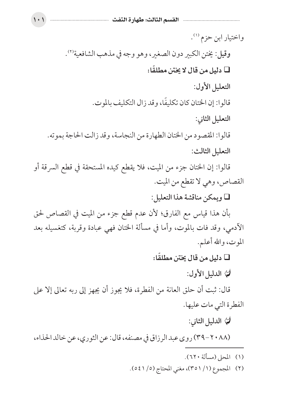 بأن هذا قياس مع الفارق؛ لأن عدم قطع جزء من الميت في القصاص لحق الآدمي، وقد فات بالموت، وأما في مسألة الختان فهي عبادة وقربة، كتغسيله بعد الموت، والله أعلم.