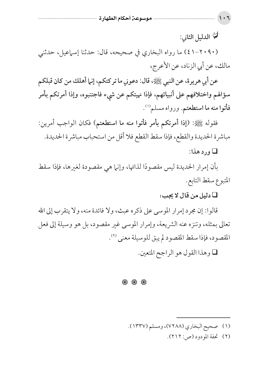 عن أبي هريرة، عن النبي صلى الله عليه وسلم، قال: دعوني ما تركتكم، إنما أهلك من كان قبلكم سؤالهم واختلافهم على أنبيائهم، فإذا نهيتكم عن شيء فاجتنبوه، وإذا أمرتكم بأمر فأتوا منه ما استطعتم. ورواه مسلم (¬١).