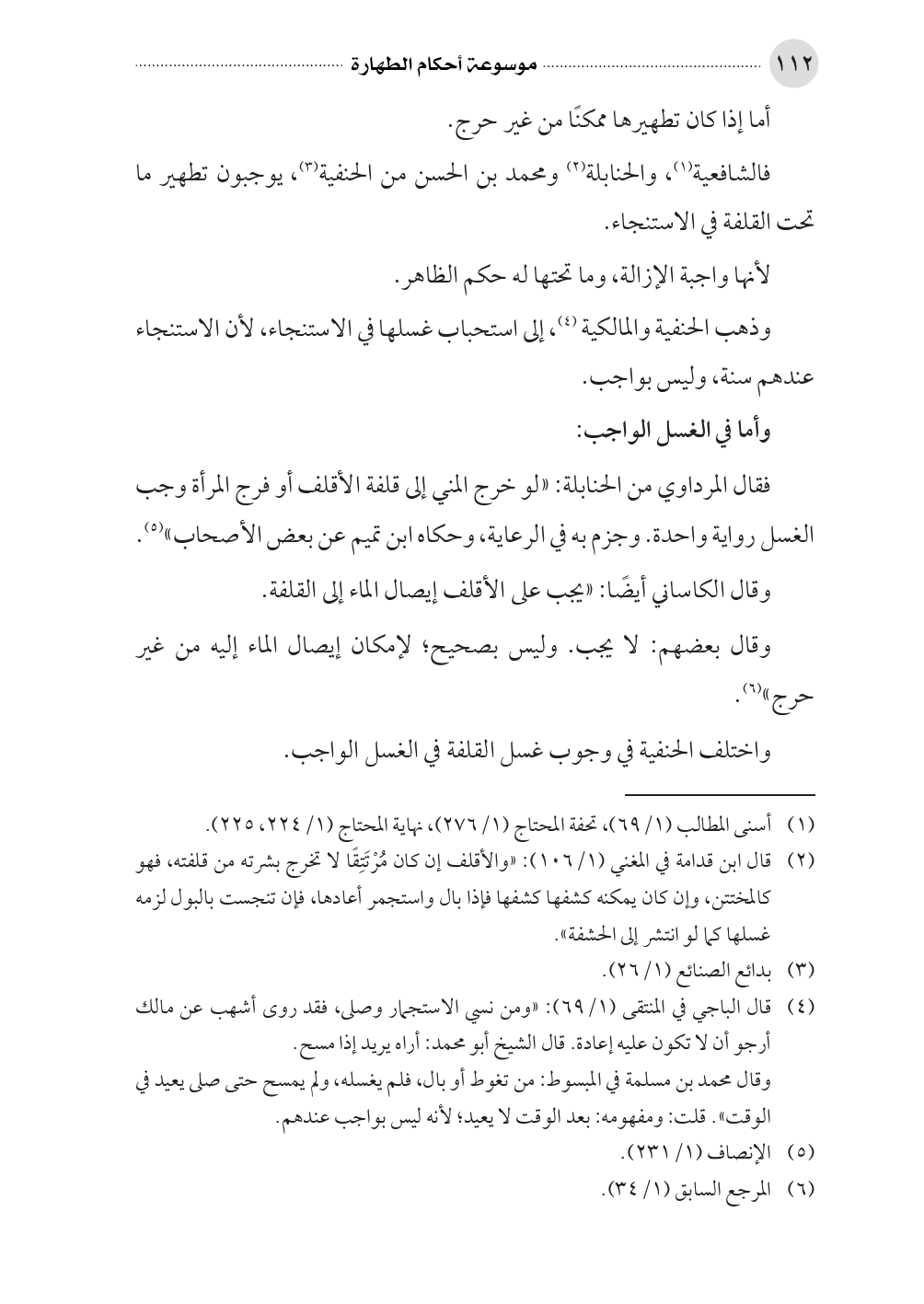 (¬٢) قال ابن قدامة في المغني (١/ ١٠٦): «والأقلف إن كان مُرْتَتِقًا لا تخرج بشرته من قلفته، فهو كالمختتن، وإن كان يمكنه كشفها كشفها فإذا بال واستجمر أعادها، فإن تنجست بالبول لزمه غسلها كما لو انتشر إلى الحشفة».