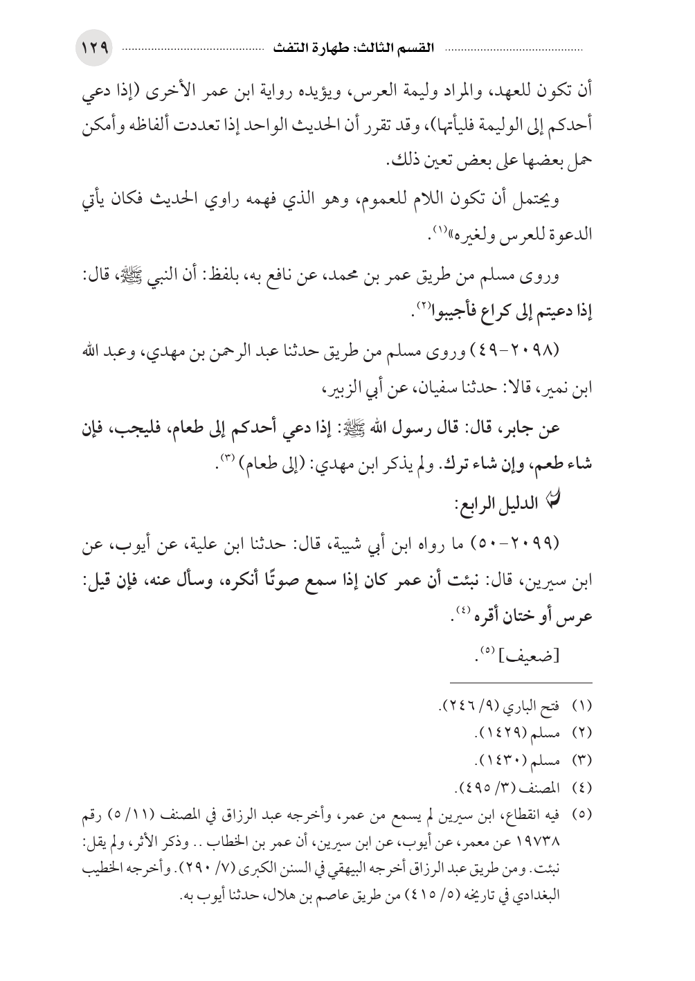 وروى مسلم من طريق عمر بن محمد، عن نافع به، بلفظ: أن النبي صلى الله عليه وسلم، قال: إذا دعيتم إلى كراع فأجيبوا (¬٢).