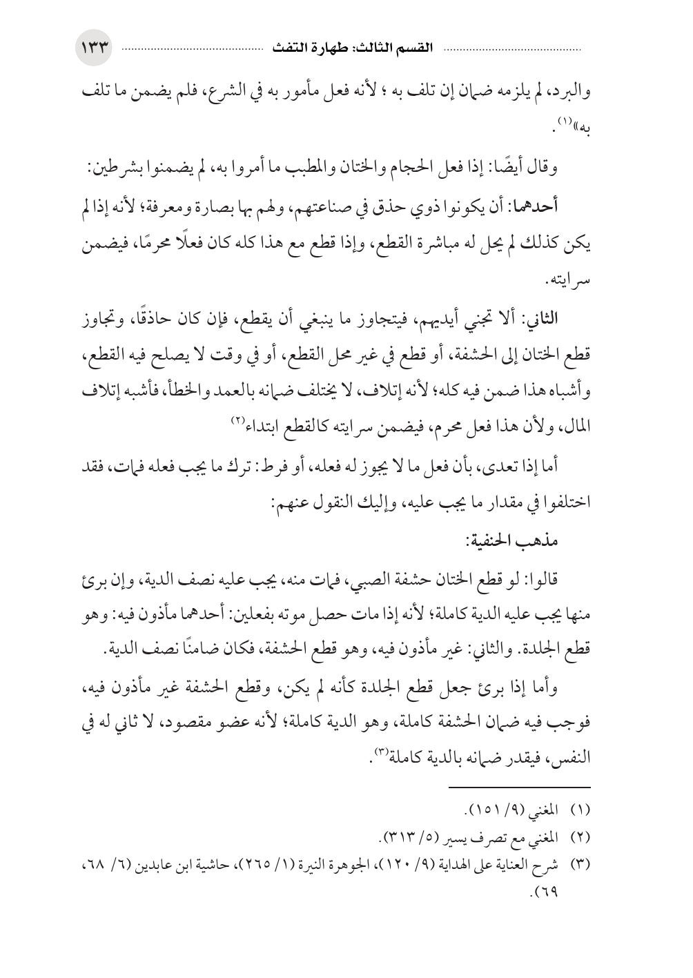 (¬٣) شرح العناية على الهداية (٩/ ١٢٠)، الجوهرة النيرة (١/ ٢٦٥)، حاشية ابن عابدين (٦/ ٦٨، ٦٩).