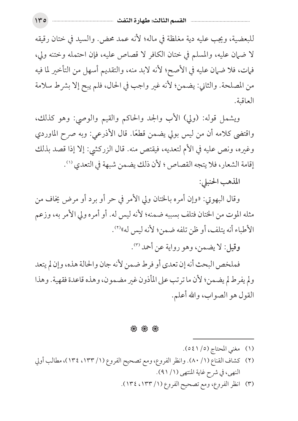 (¬٣) انظر الفروع، ومع تصحيح الفروع (١/ ١٣٣، ١٣٤).