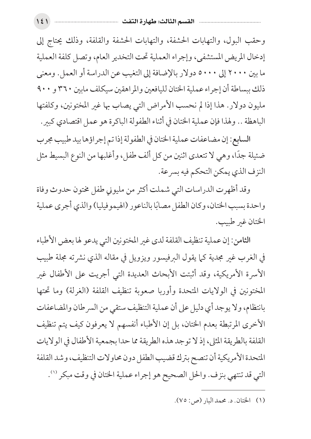 (¬١) الختان. د. محمد البار (ص: ٧٥).