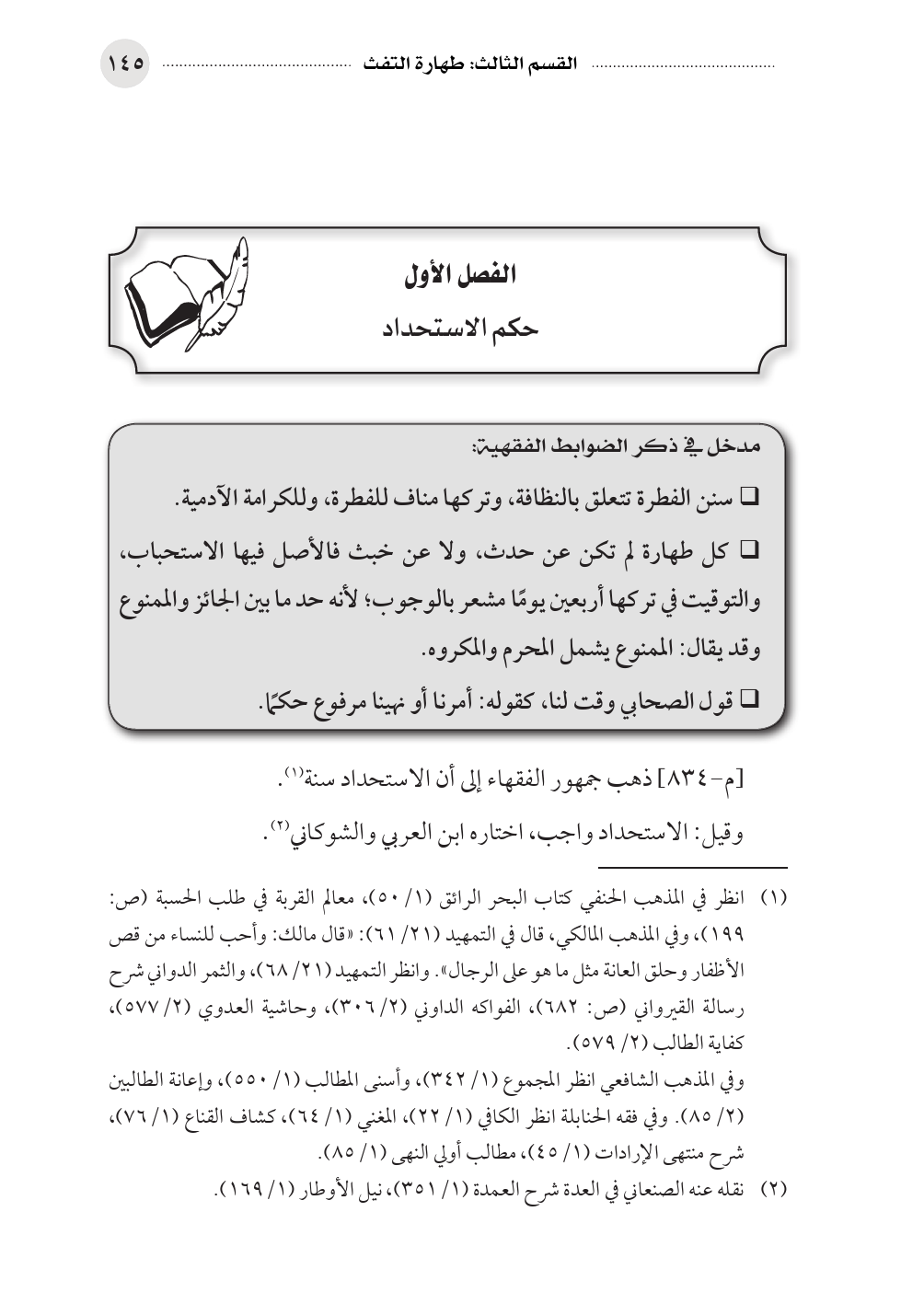 وقيل: الاستحداد واجب، اختاره ابن العربي والشوكاني (¬٢).