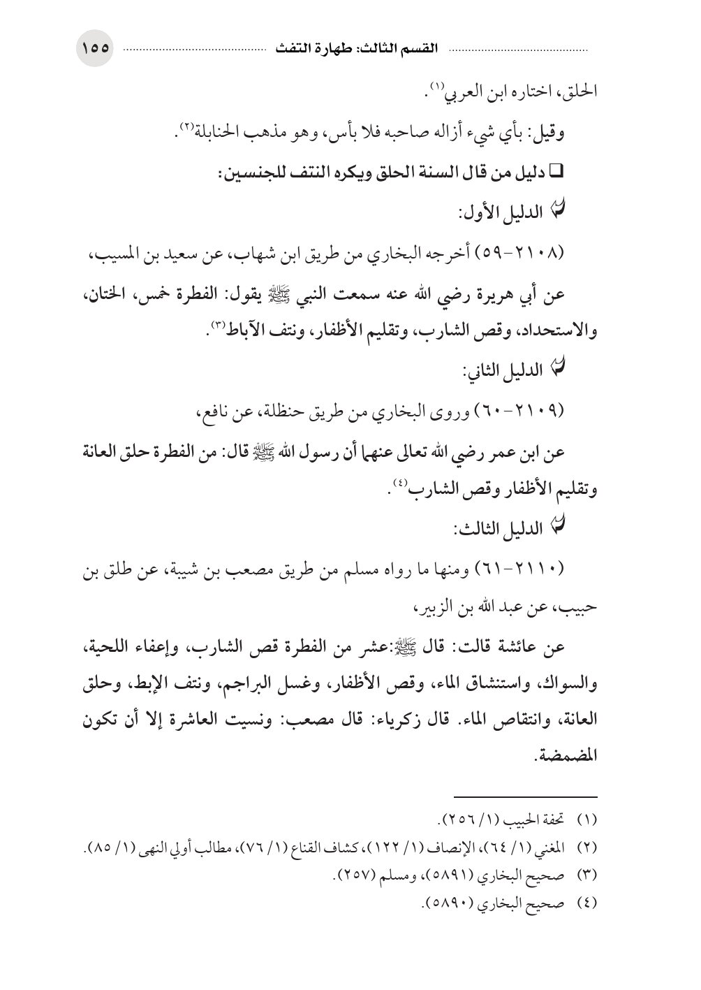 عن أبي هريرة رضي الله عنه سمعت النبي صلى الله عليه وسلم يقول: الفطرة خمس، الختان، والاستحداد، وقص الشارب، وتقليم الأظفار، ونتف الآباط (¬٣).