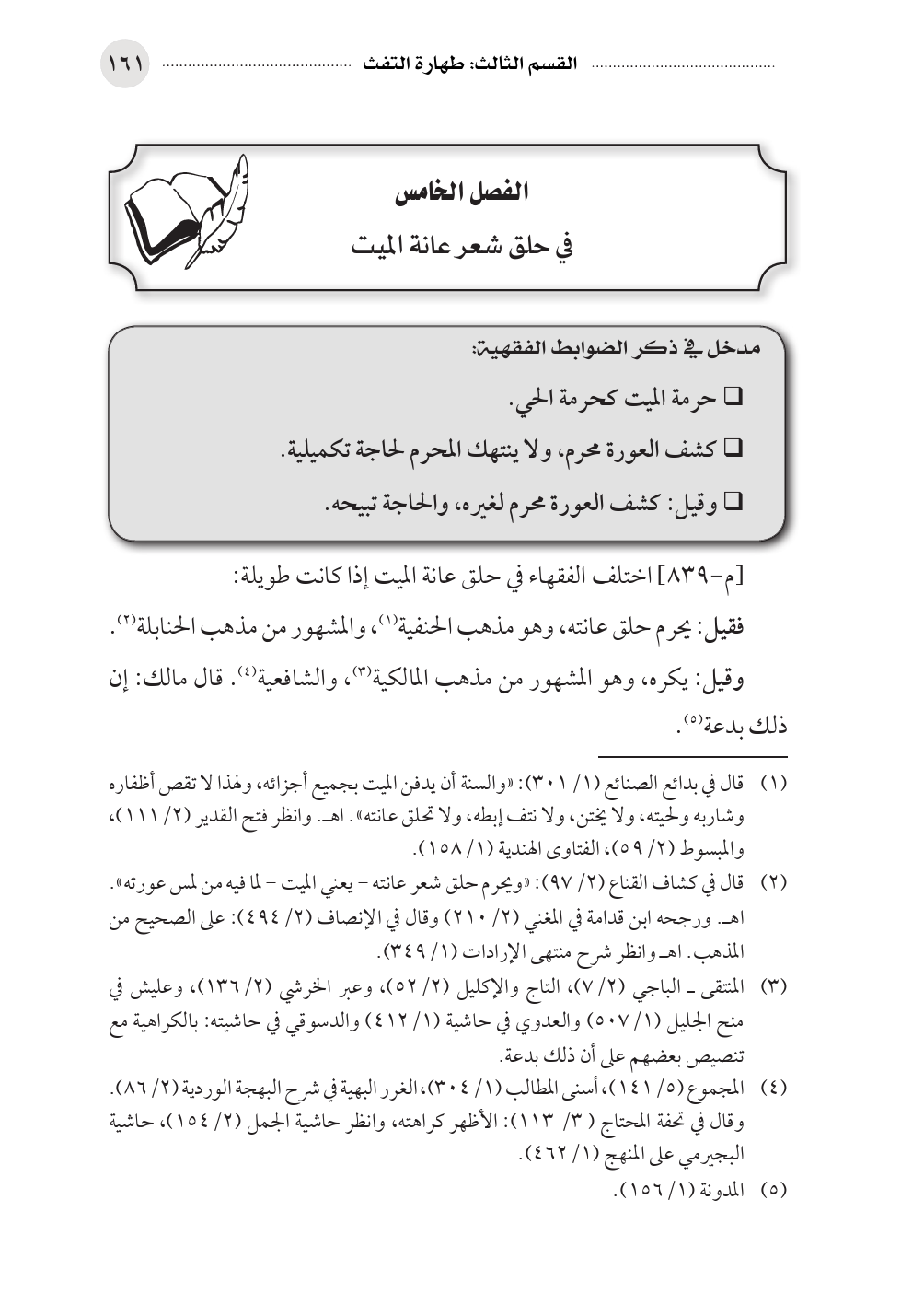 (¬١) قال في بدائع الصنائع (١/ ٣٠١): «والسنة أن يدفن الميت بجميع أجزائه، ولهذا لا تقص أظفاره وشاربه ولحيته، ولا يختن، ولا نتف إبطه، ولا تحلق عانته». اهـ. وانظر فتح القدير (٢/ ١١١)، والمبسوط (٢/ ٥٩)، الفتاوى الهندية (١/ ١٥٨).