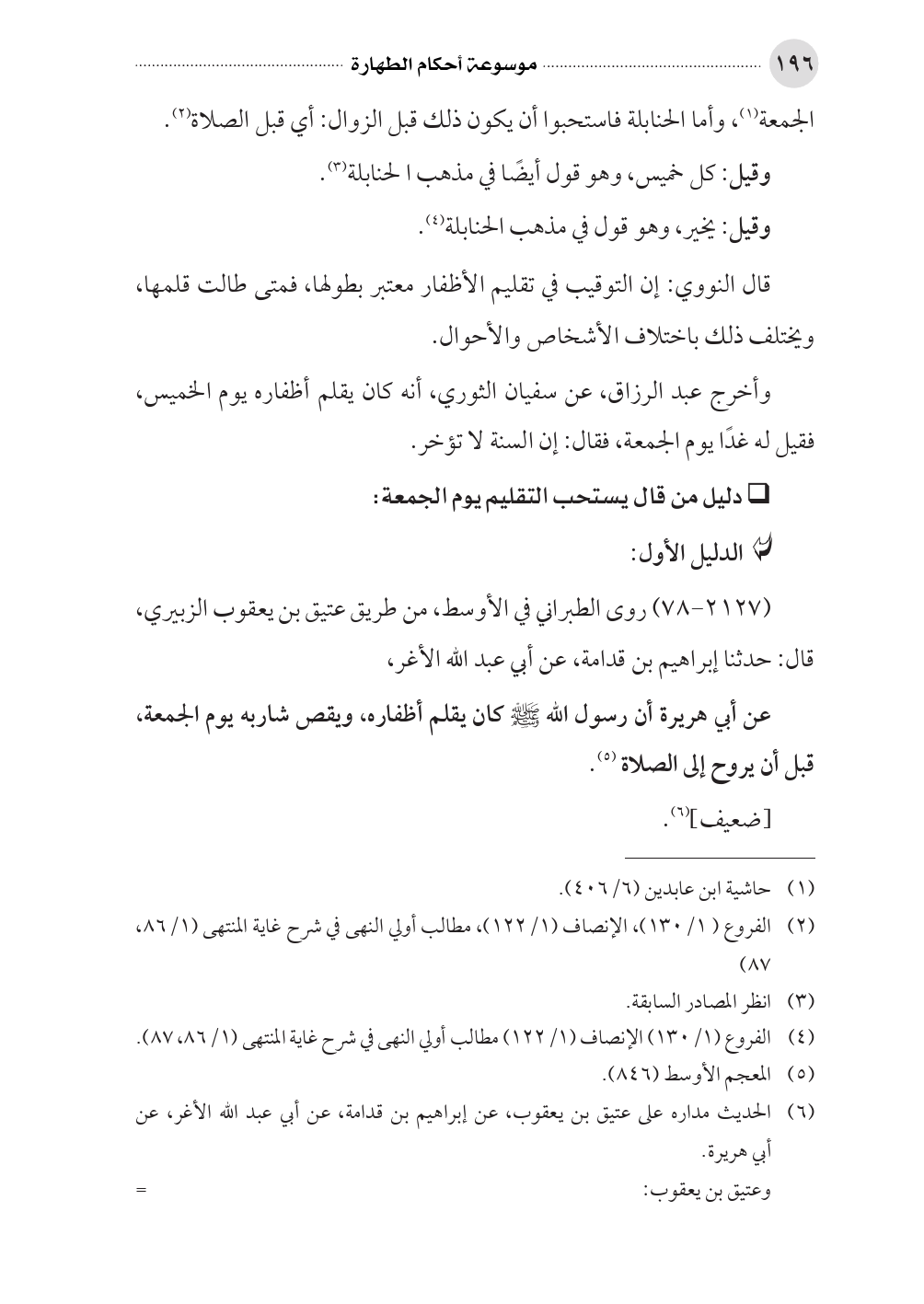 • دليل من قال يستحب التقليم يوم الجمعة:
