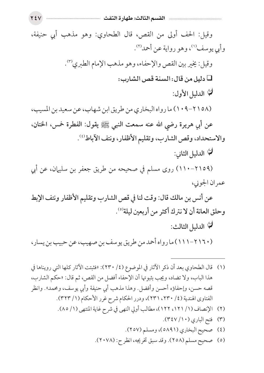 • دليل من قال: السنة قص الشارب: