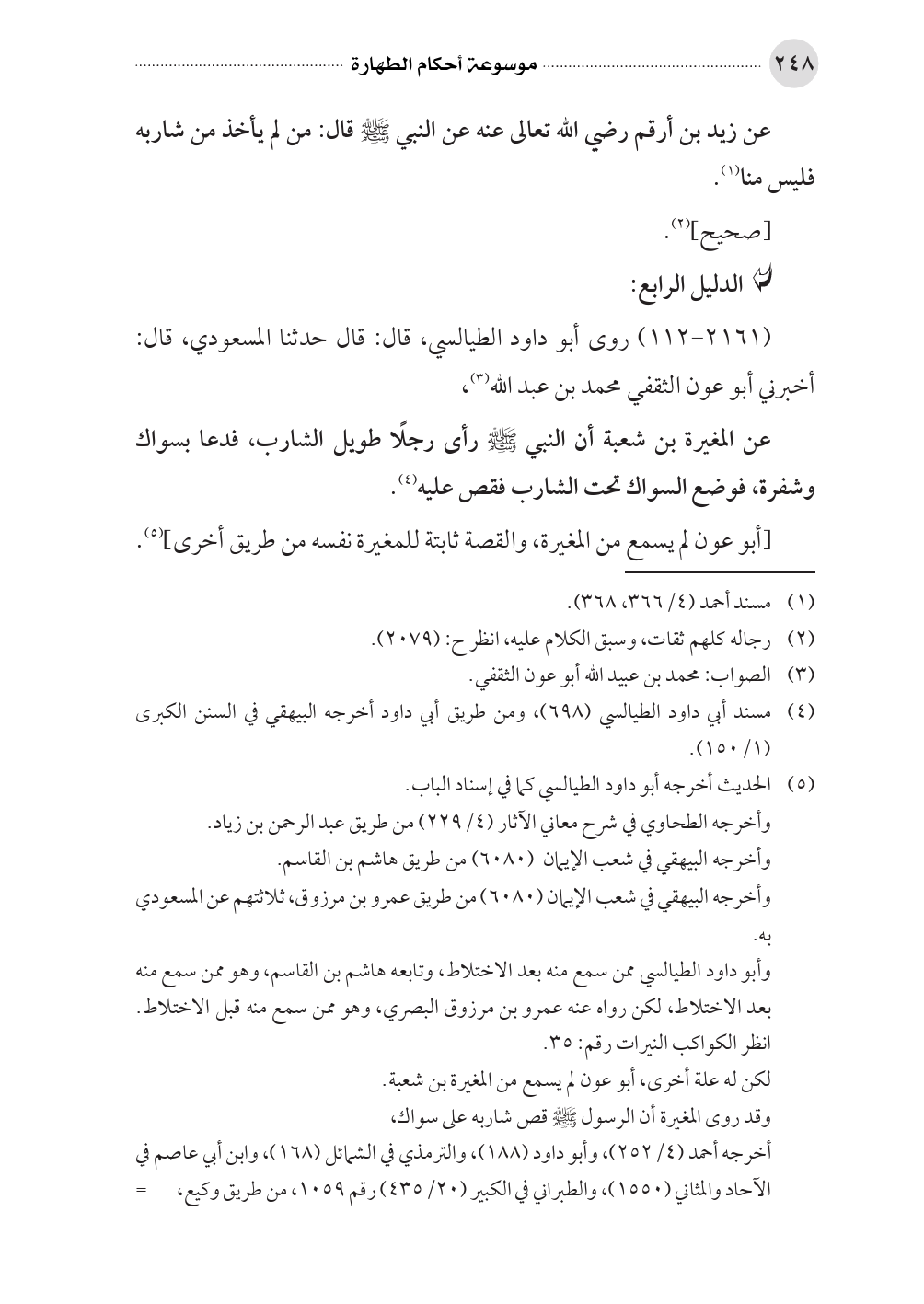 (٢١٦١ - ١١٢) روى أبو داود الطيالسي، قال: قال حدثنا المسعودي، قال: أخبرني أبو عون الثقفي محمد بن عبد الله (¬٣)،