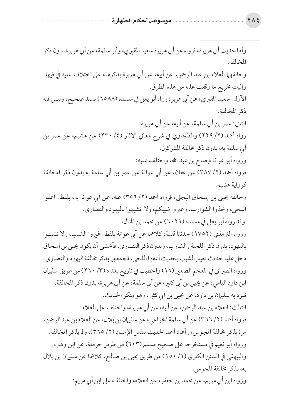 فرواه أحمد (٢/ ٣٦٦) عن أبي سلمة الخزاعي، عن سليمان بن بلال، عن العلاء بن عبد الرحمن، مرة بذكر مخالفة المجوس، وأعاد أحمد الحديث بنفس الإسناد (٢/ ٣٦٥)، ولم يذكر المخالفة.