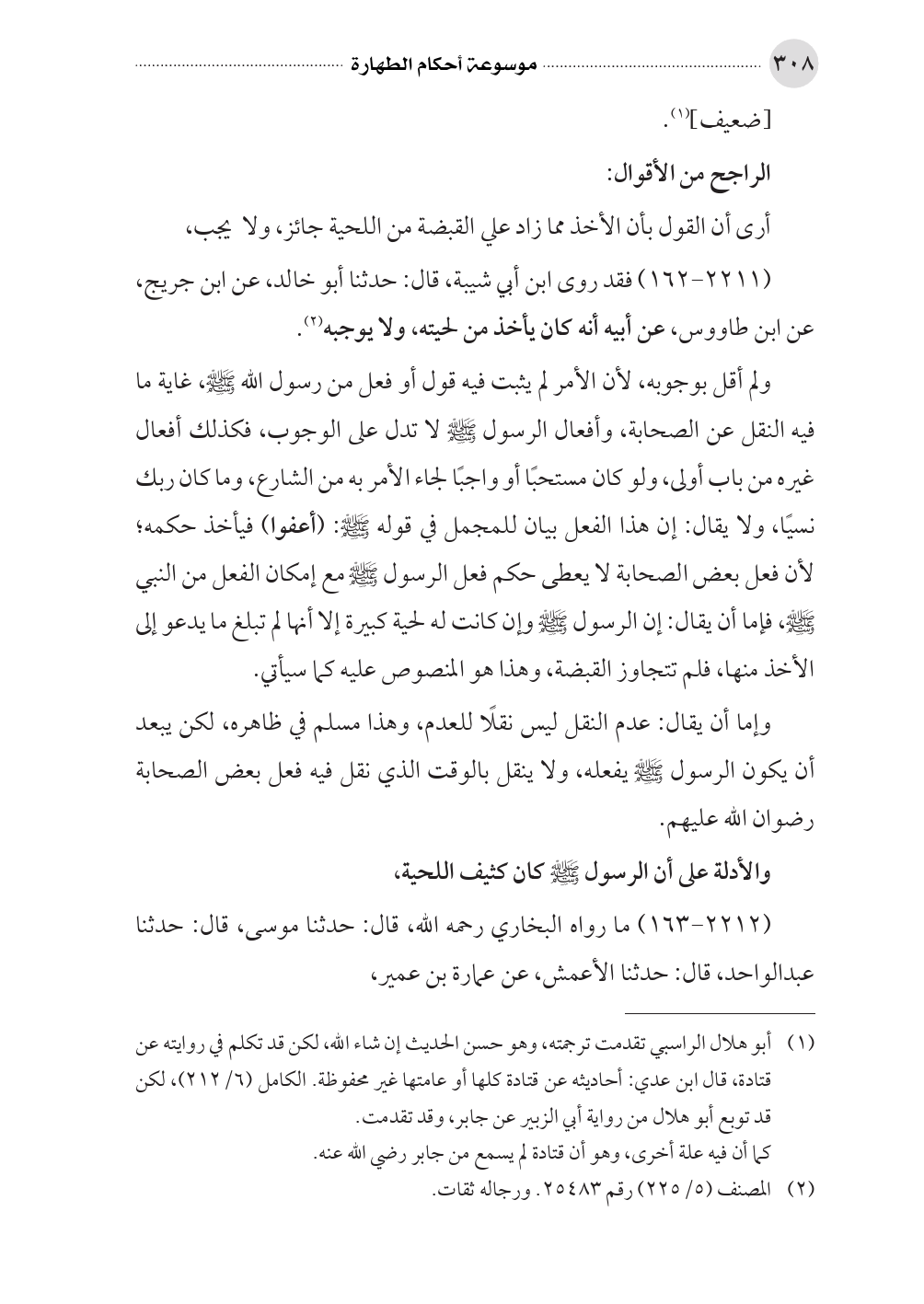 (٢٢١١ - ١٦٢) فقد روى ابن أبي شيبة، قال: حدثنا أبو خالد، عن ابن جريج، عن ابن طاووس، عن أبيه أنه كان يأخذ من لحيته، ولا يوجبه (¬٢).