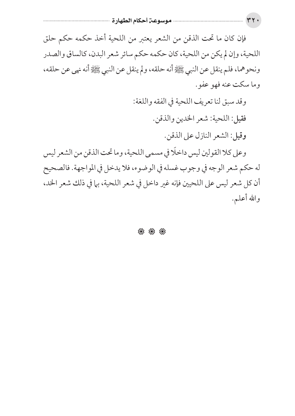 وعلى كلا القولين ليس داخلًا في مسمى اللحية، وما تحت الذقن من الشعر ليس له حكم شعر الوجه في وجوب غسله في الوضوء، فلا يدخل في المواجهة. فالصحيح أن كل شعر ليس على اللحيين فإنه غير داخل في شعر اللحية، بما في ذلك شعر الخد، والله أعلم.